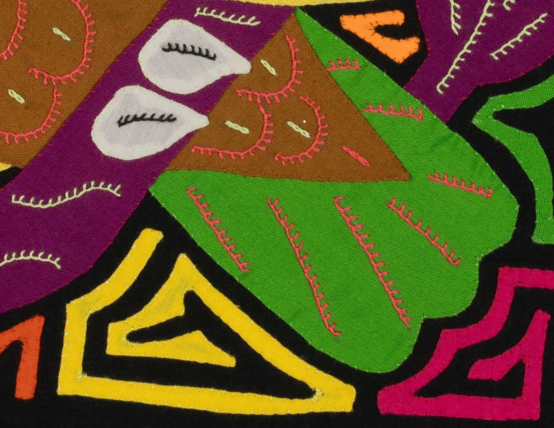 Some molas portray mythical beings such as dragons, mermaids, or hybrid animals. These imaginative designs often blend storytelling with spiritual symbolism, reflecting legends passed down through generations.