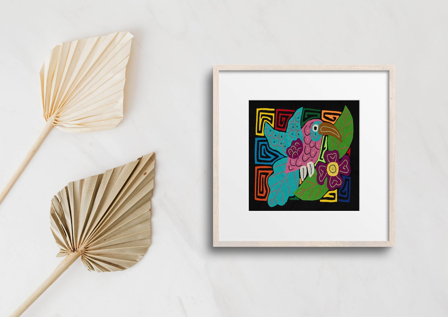Molas often showcase animals such as birds, fish, turtles, and more. These designs can range from realistic to abstract and sometimes feature multiple animals in a single piece. Each depiction carries symbolic meaning and reflects the Guna people's deep connection to nature.