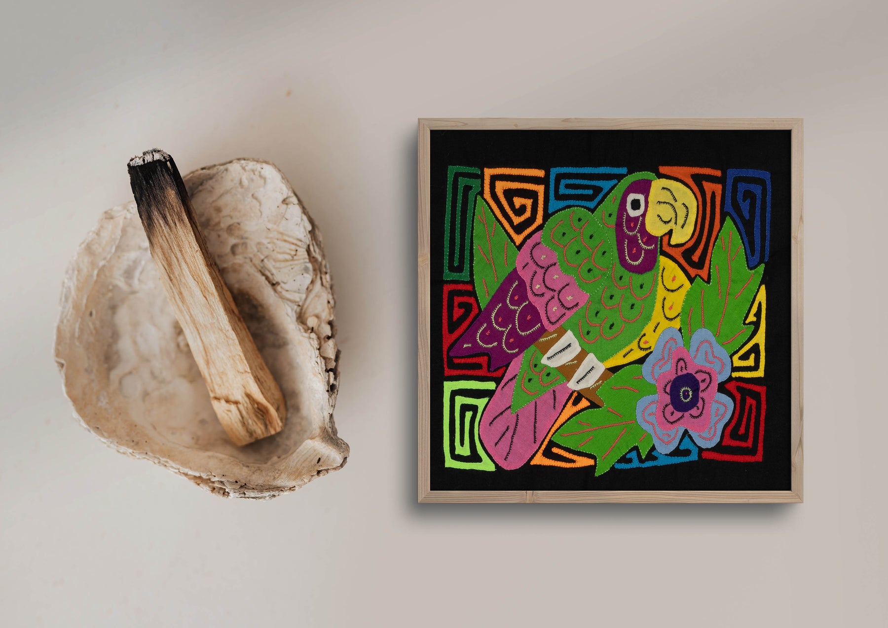 Molitas are traditionally used as parts of mola blouses, and today they make beautiful small works of art in their own right. You can frame this piece, incorporate it into a quilt or pillow, or display it on a shelf to bring a touch of vibrant Panamanian culture into your space. Because each molita is stitched by hand, no two are exactly alike, and small variations in color and stitching add to its character and authenticity.