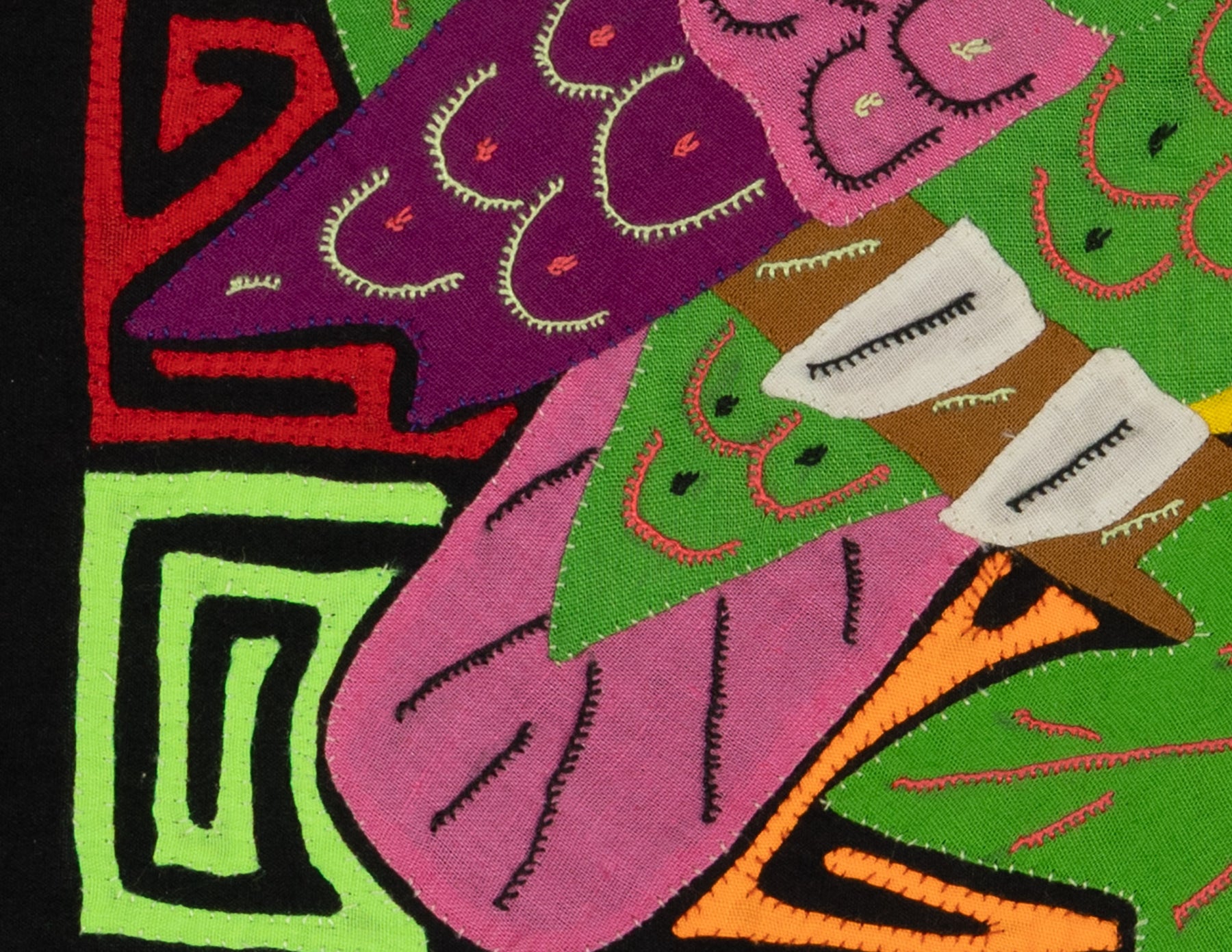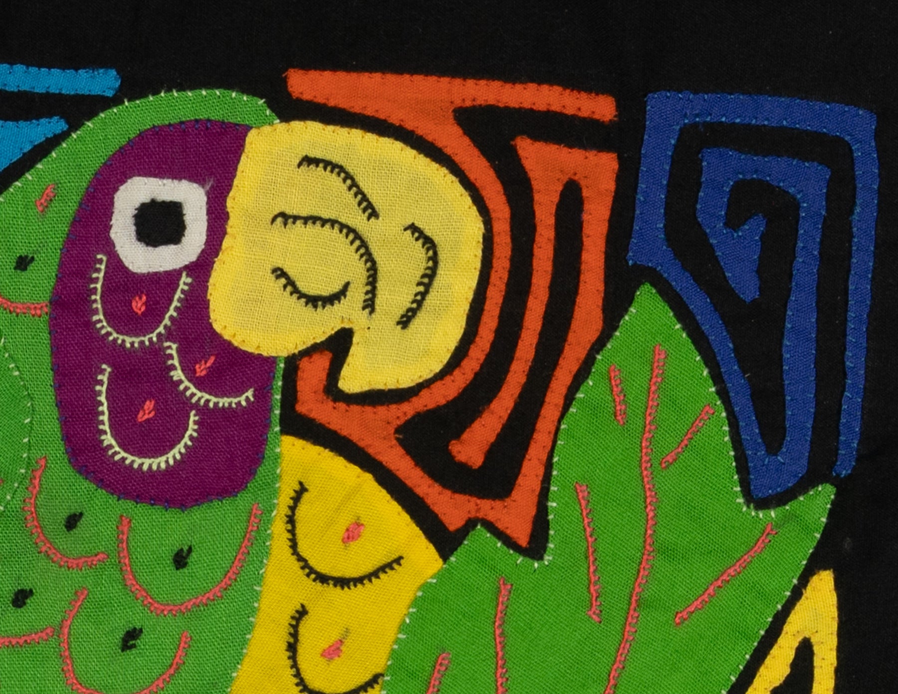 Molas often showcase animals such as birds, fish, turtles, and more. These designs can range from realistic to abstract and sometimes feature multiple animals in a single piece. Each depiction carries symbolic meaning and reflects the Guna people's deep connection to nature.
