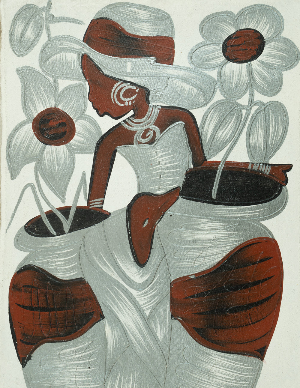 The artwork is a subtle yet powerful representation of the cycle of growth and the timeless beauty of the female form. The artist's signature confirms the authenticity of this tribute to the vital role of women in sustaining life and tradition.