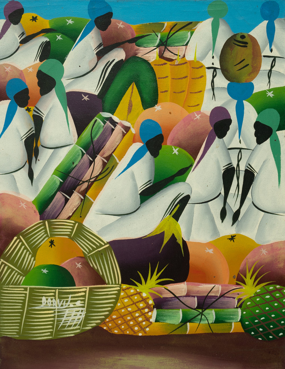 "Fruitful Gathering" is not just a visual experience; it is a cultural journey that invites the viewer to partake in the richness of Haitian traditions. Ideal for art enthusiasts and collectors who appreciate pieces that embody the spirit of a community, this painting is a timeless tribute to the heart of Haiti's social and cultural life.