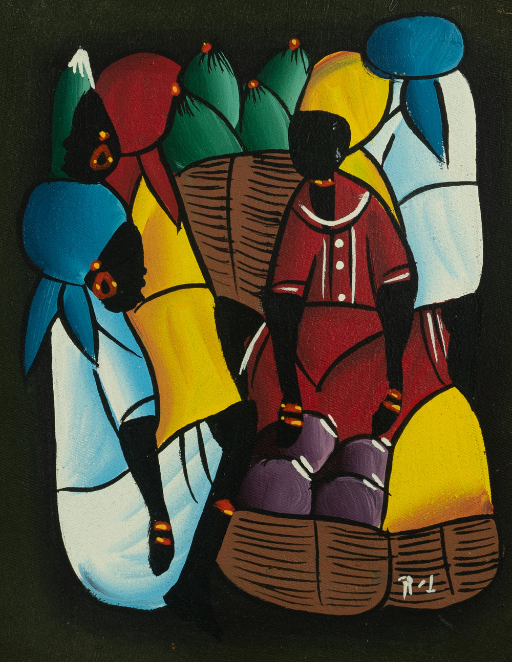 With a keen eye for detail and a palette that draws from the island's own spectrum of colors, this canvas is a celebration of the daily life and industrious spirit that thrives in Haitian markets. The artist's use of bold, expressive contours and saturated colors brings a sense of movement and energy that is palpable.