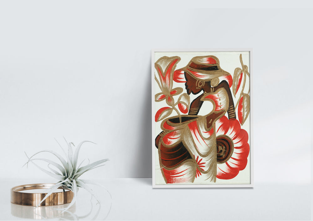 Enliven your environment with "Rouge Resonance," a canvas that not only adds aesthetic appeal but also infuses your space with the warmth and vivacious spirit of the Haitian land.