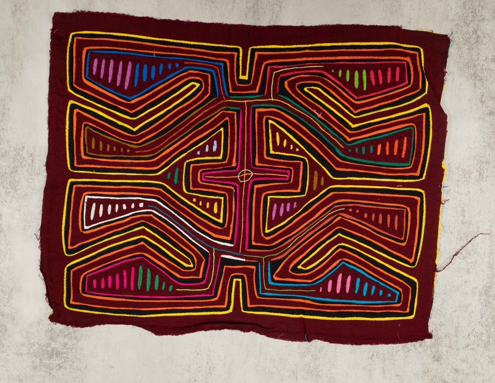 TRADITIONAL CONSTRUCTION & DESIGN: Molas are hand-made using a reverse appliqué technique using several layers of different colored cloth. The largest pattern is typically cut from the top layer and smaller patterns from each underlying layer. Geometric molas are the most traditional. Originating from ancient body paintings. Designs usually portray wildlife in the Rainforest. Inspiration comes from the nature and beauty that surrounds them.