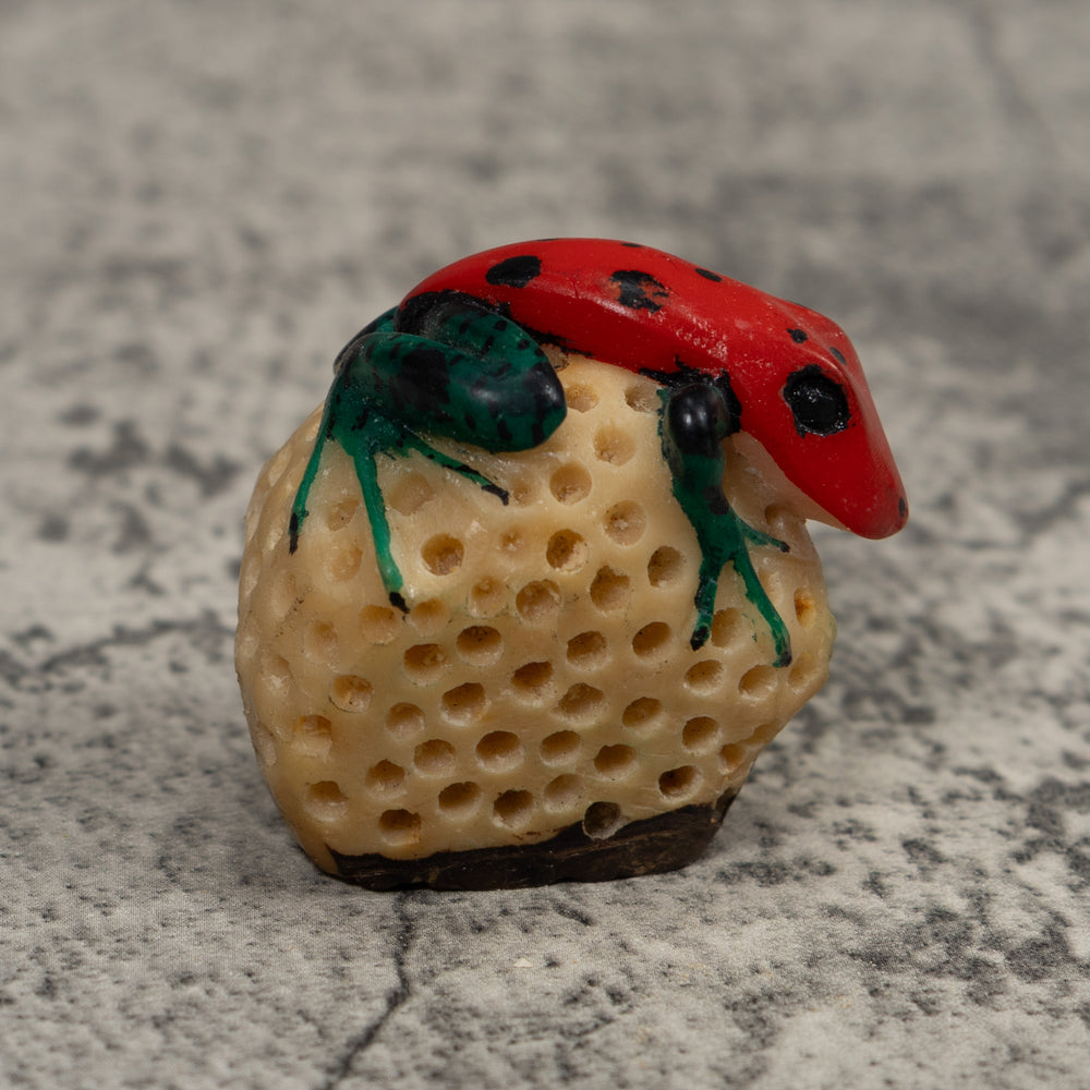 Vintage Red And Black Poison Dart Frog Tagua Carving