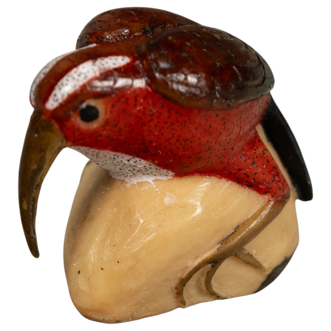 Vintage Red Brown And White Rainforest Bird Tagua Carving