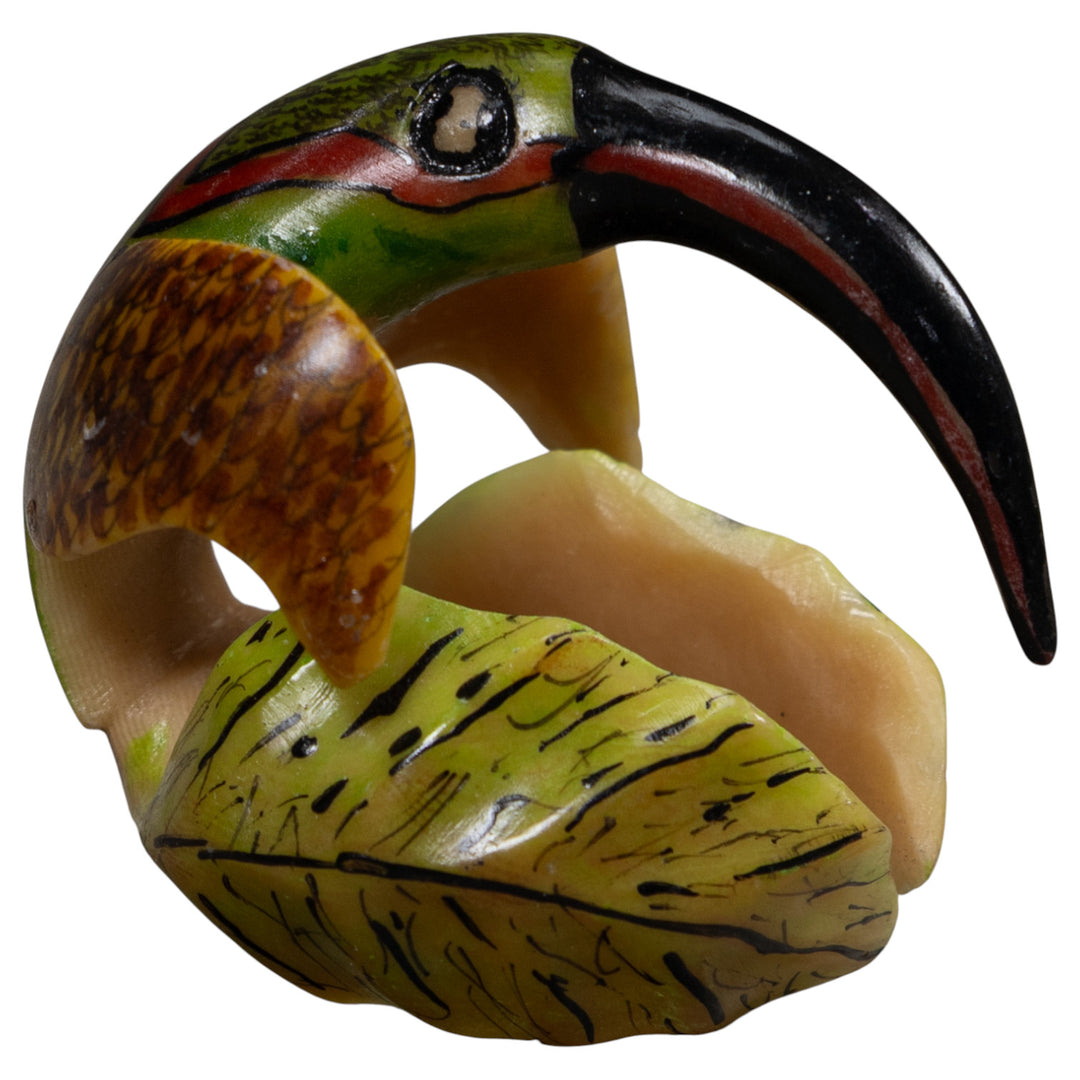 Vintage Red Green Black And Yellow Toucan Parrot Tagua Carving