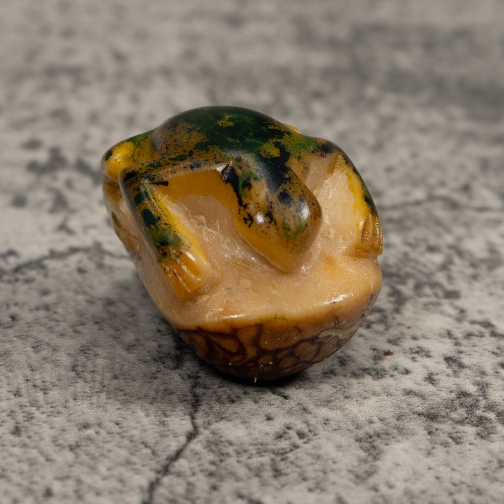 Vintage Green Yellow And Black Frog Tagua Carving