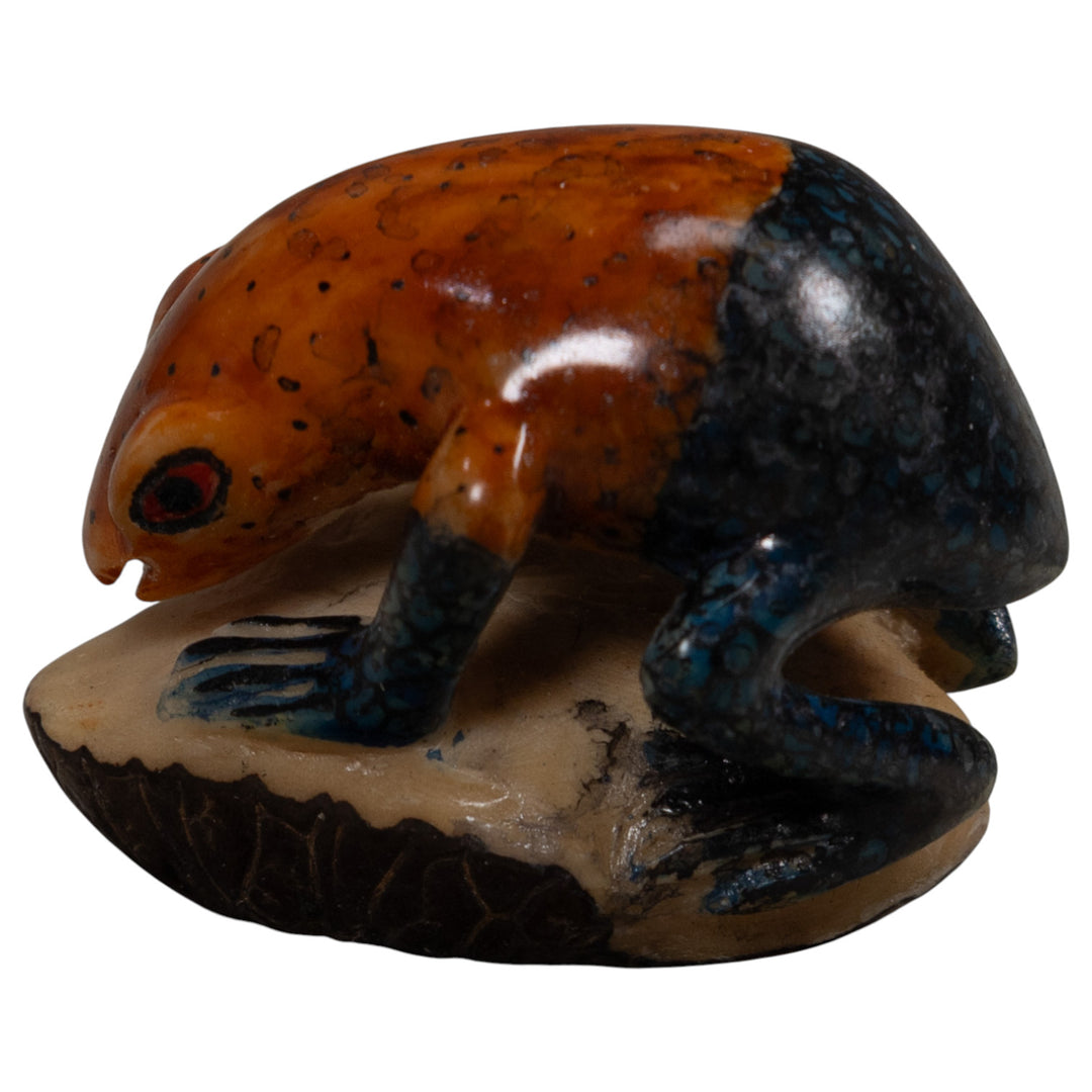 Vintage Blue And Red Poison Dart Frog Tagua Carving