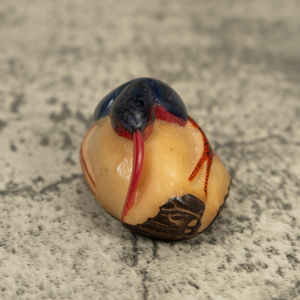 Vintage Blue And Orange Rainforest Bird Tagua Carving