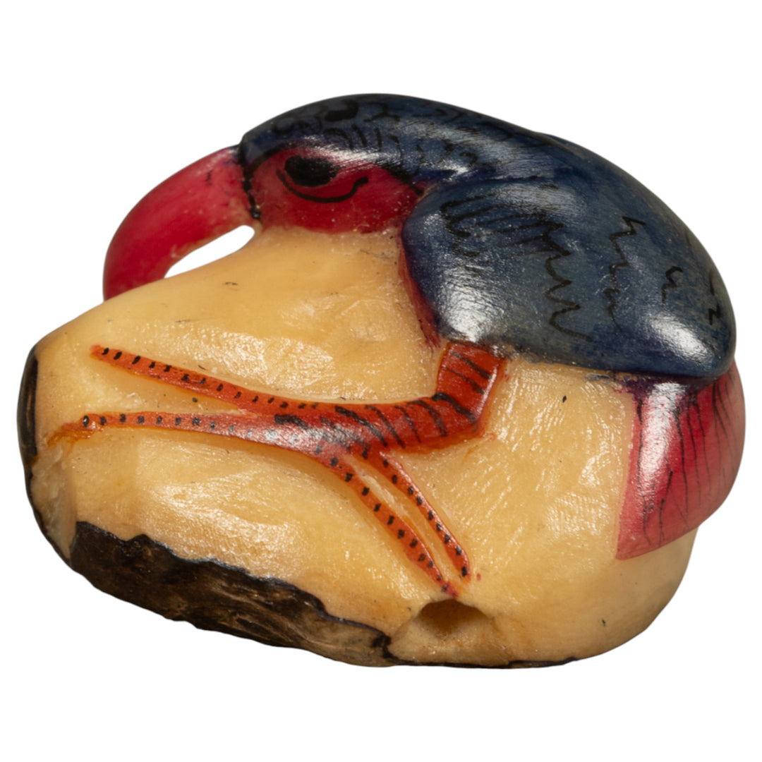 Vintage Orange Black And Yellow Parrot Bird Tagua Carving