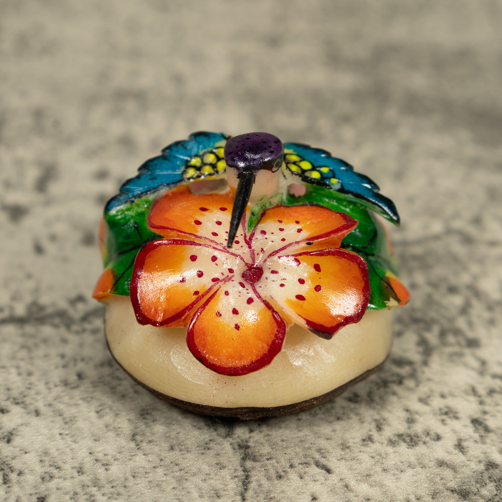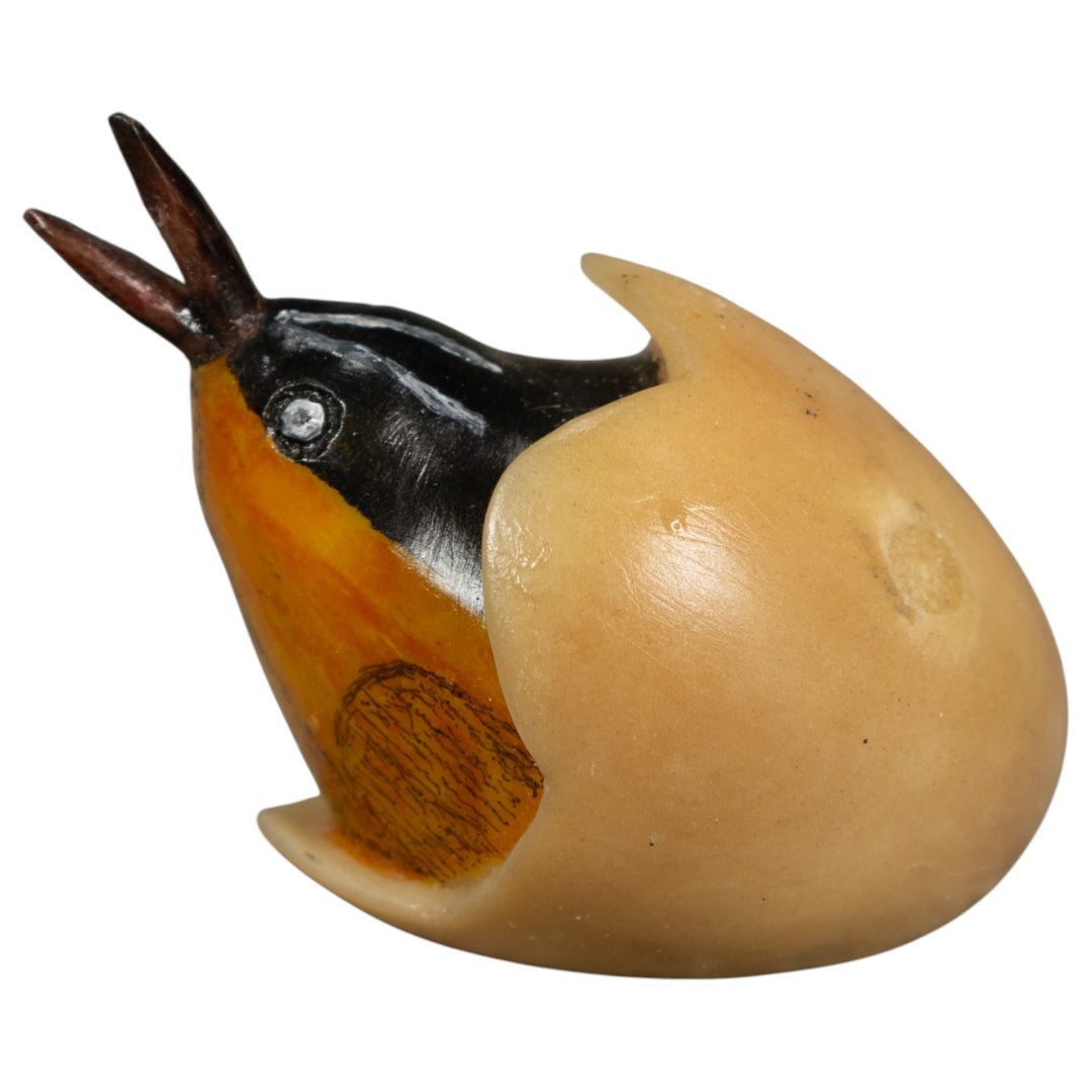 Orange Seed Eater Bird Emerging From Egg Tagua Carving