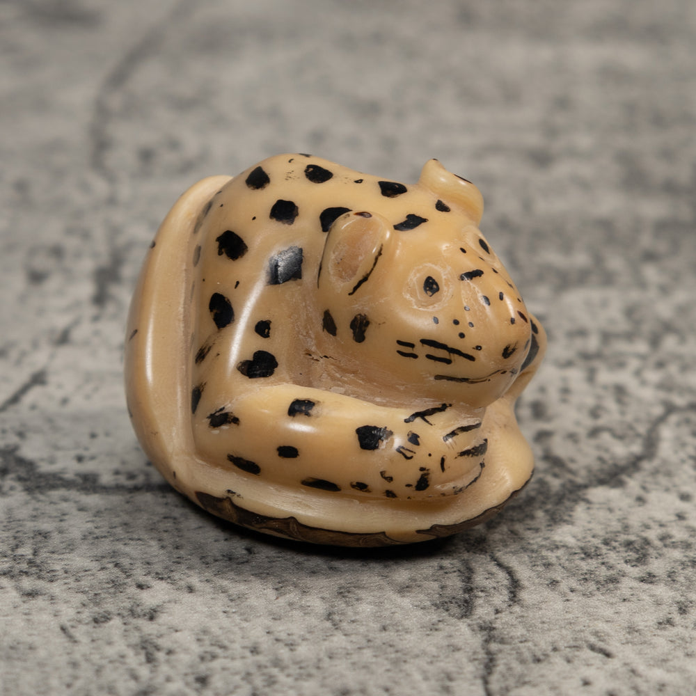 Vintage White Jaguar Cat Tagua Carving