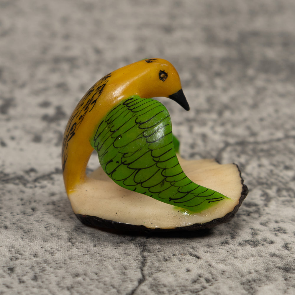 Vintage Yellow And Green Bird Tagua Carving