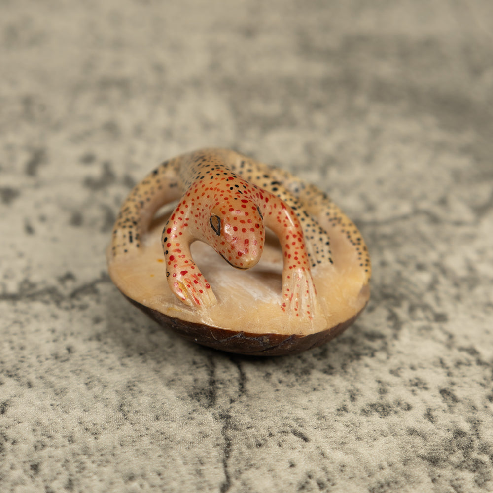 Vintage Black And Red Gecko Lizard Tagua Carving