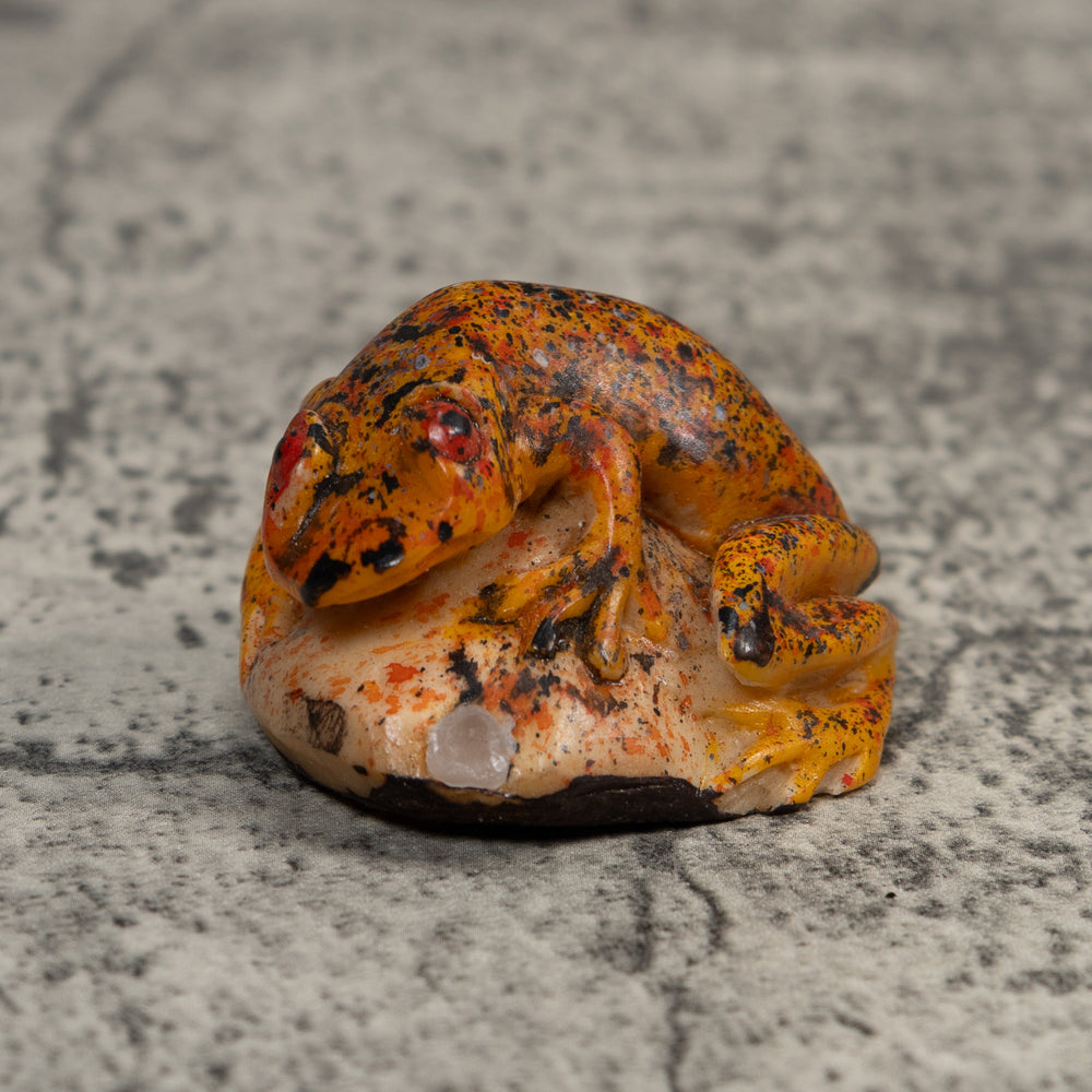 Vintage Orange And Black Frog Tagua Carving