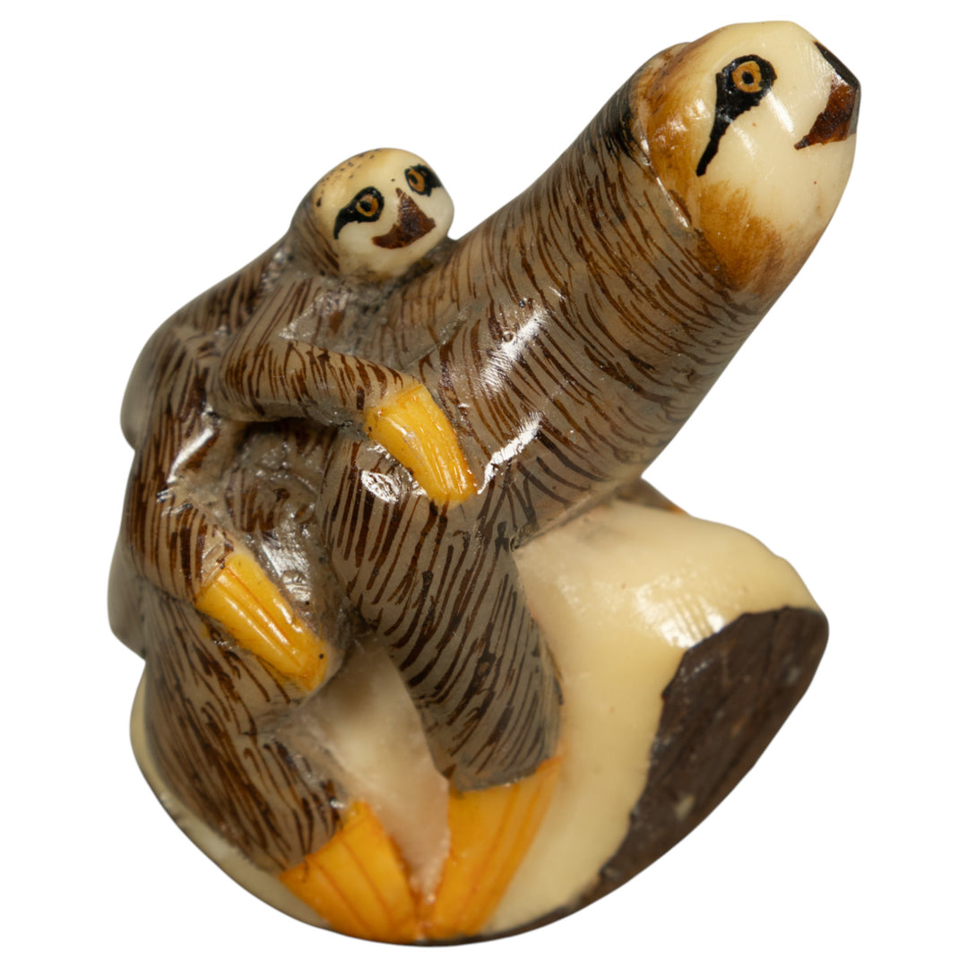 Black And Orange Jaguar Cat With Kitten Tagua Carving