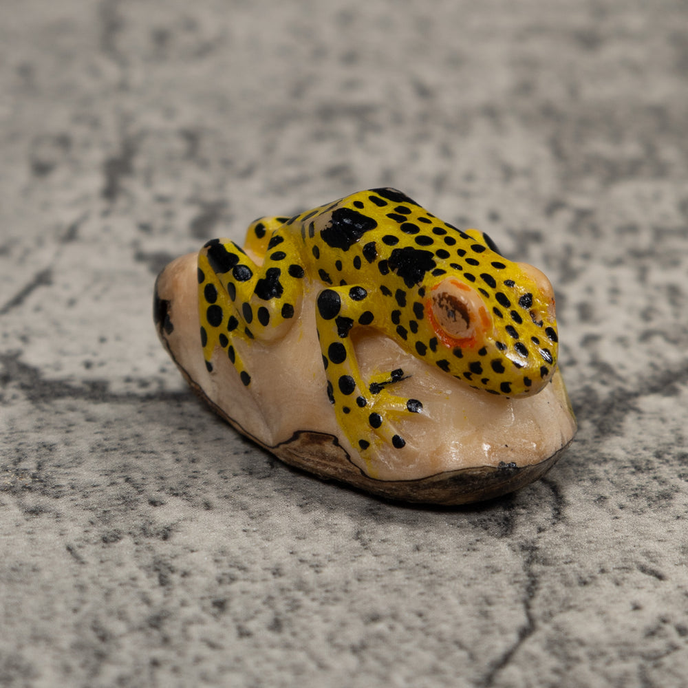 Vintage Yellow And Black Frog Tagua Carving
