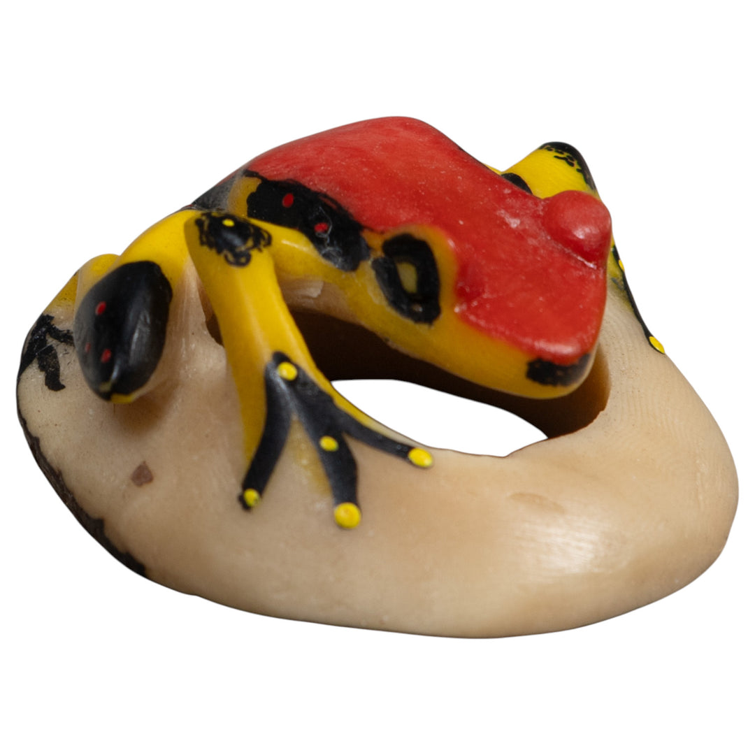 Vintage Red Black And Yellow Poison Dart Frog Tagua Carving
