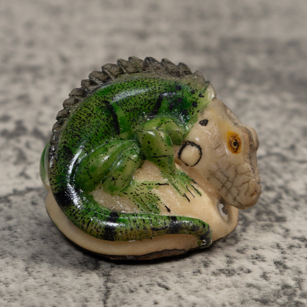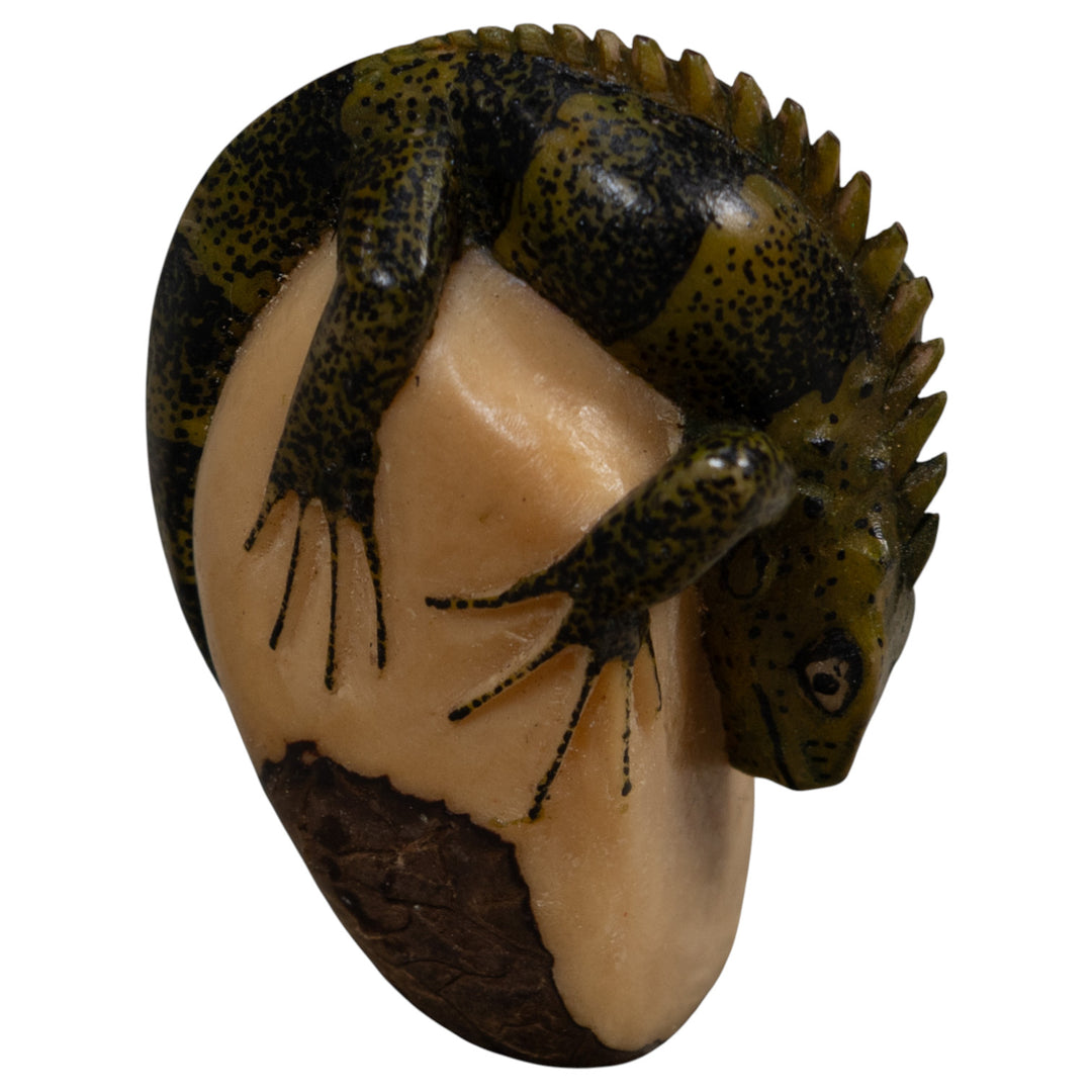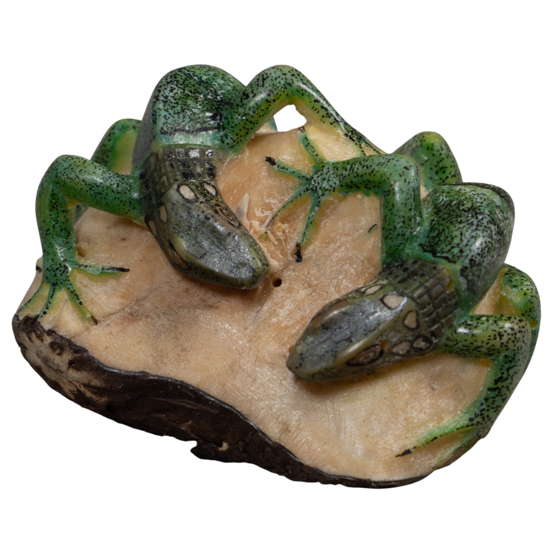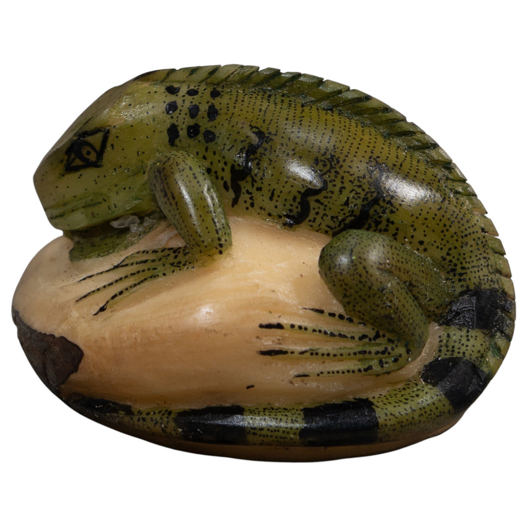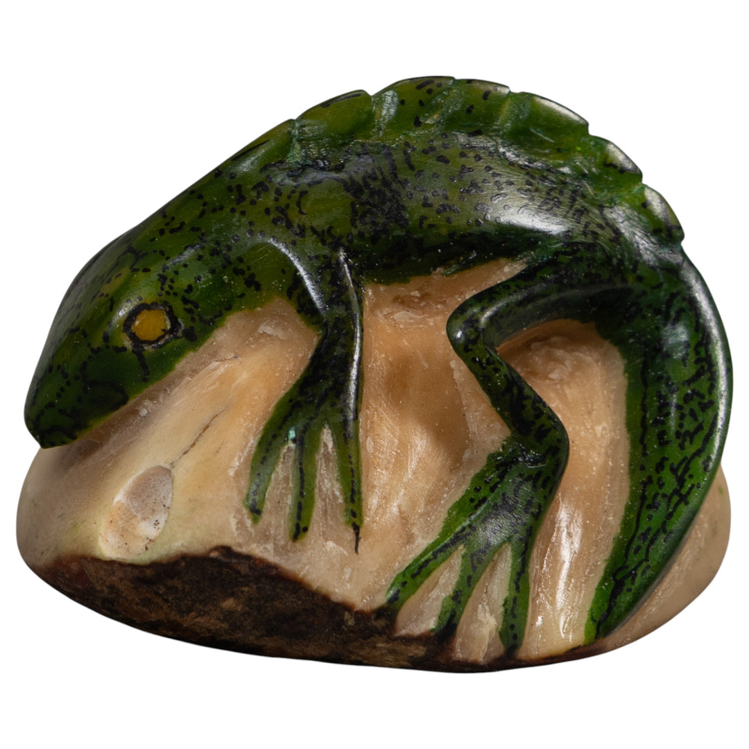 Vintage Green And Black Iguana Lizard Tagua Carving