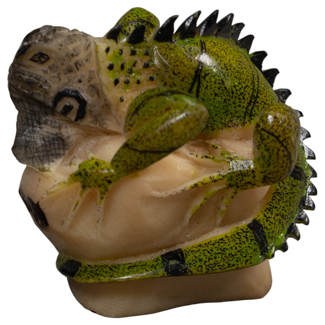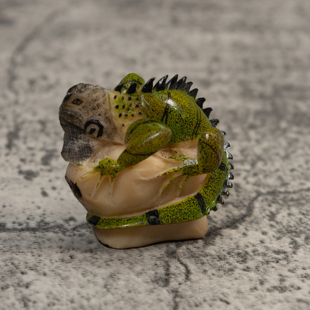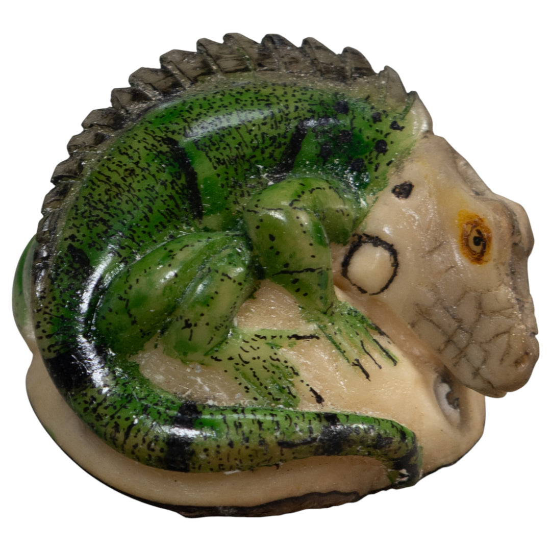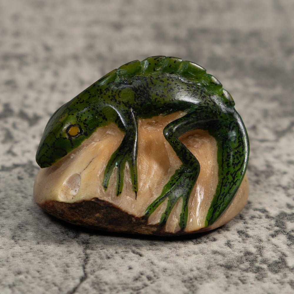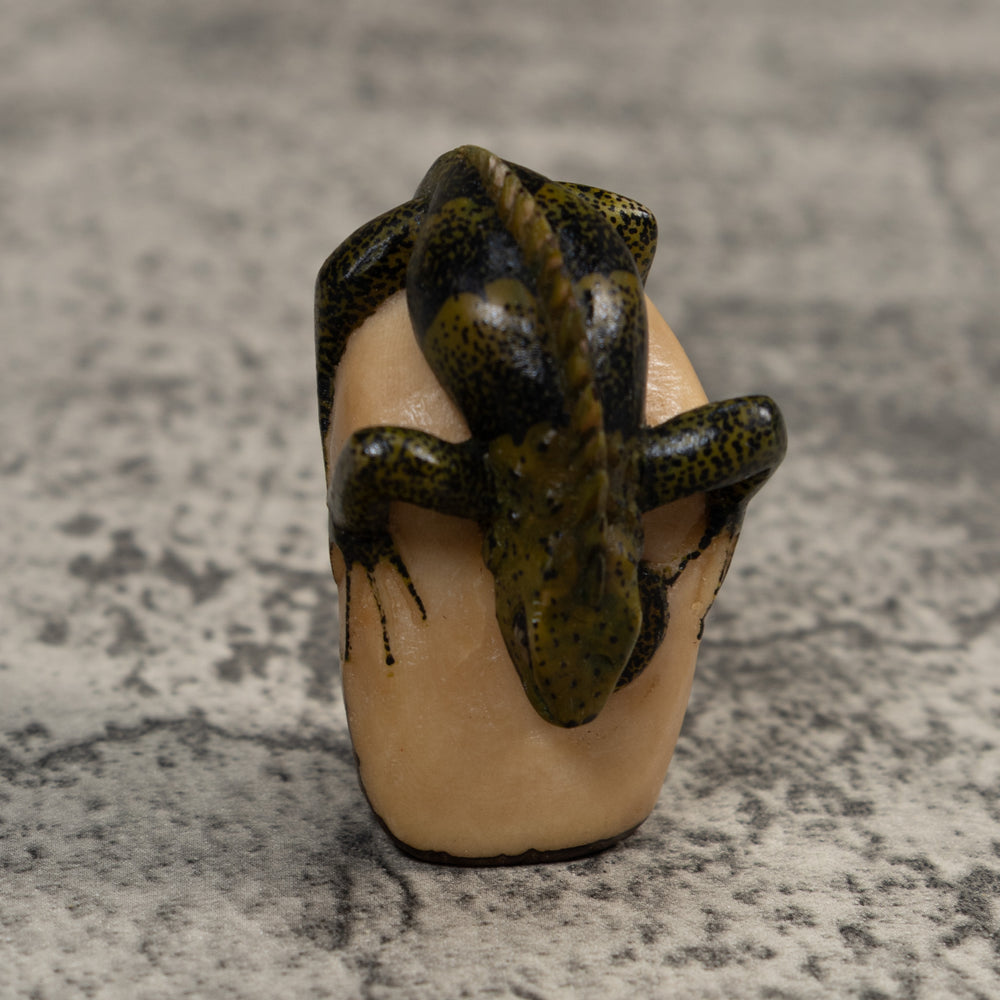 Vintage Green And Black Iguana Lizard Tagua Carving