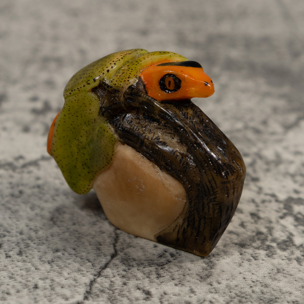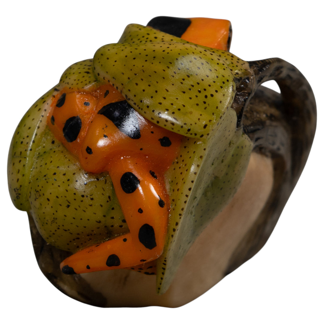 Vintage Green Orange And Black Poison Dart Frog Tagua Carving