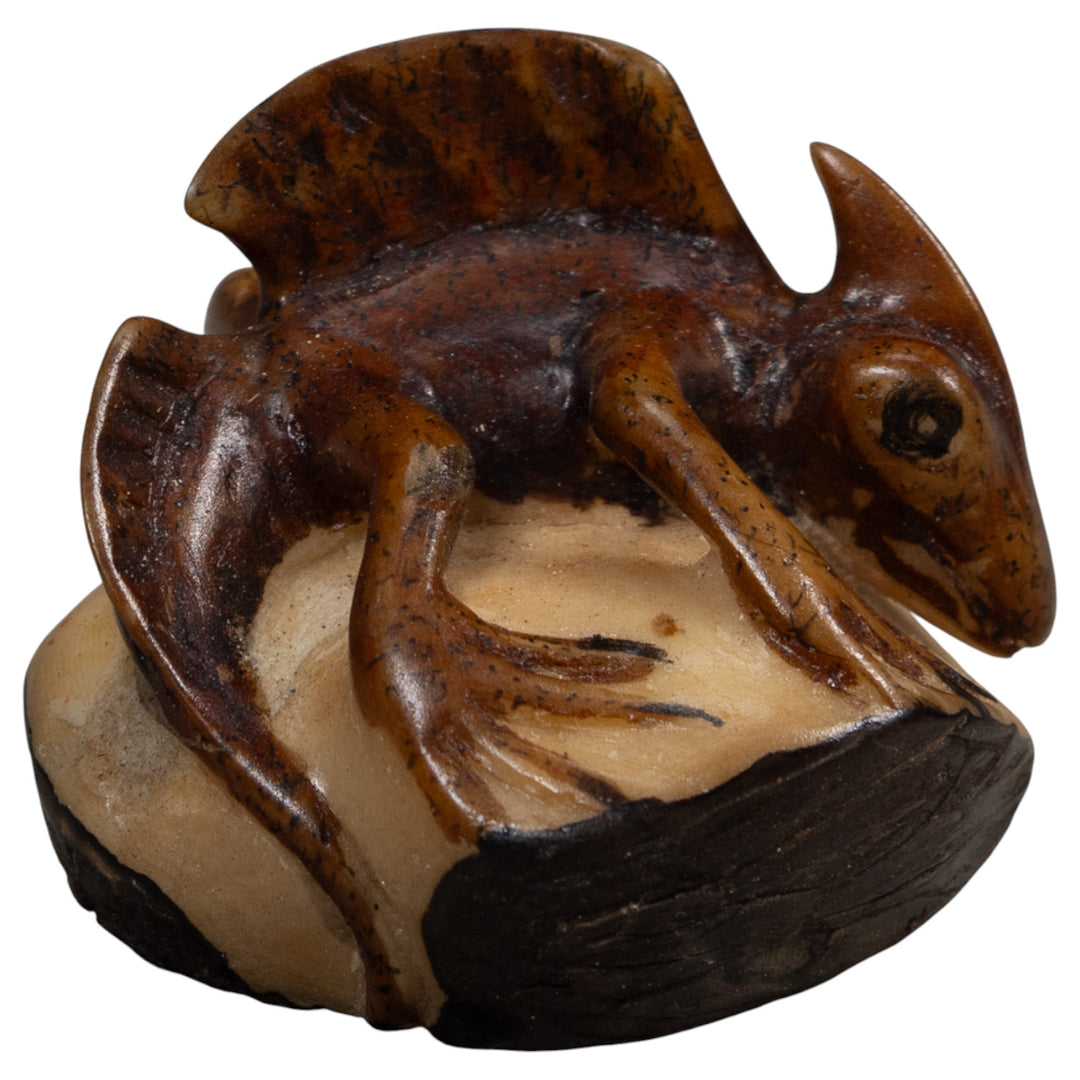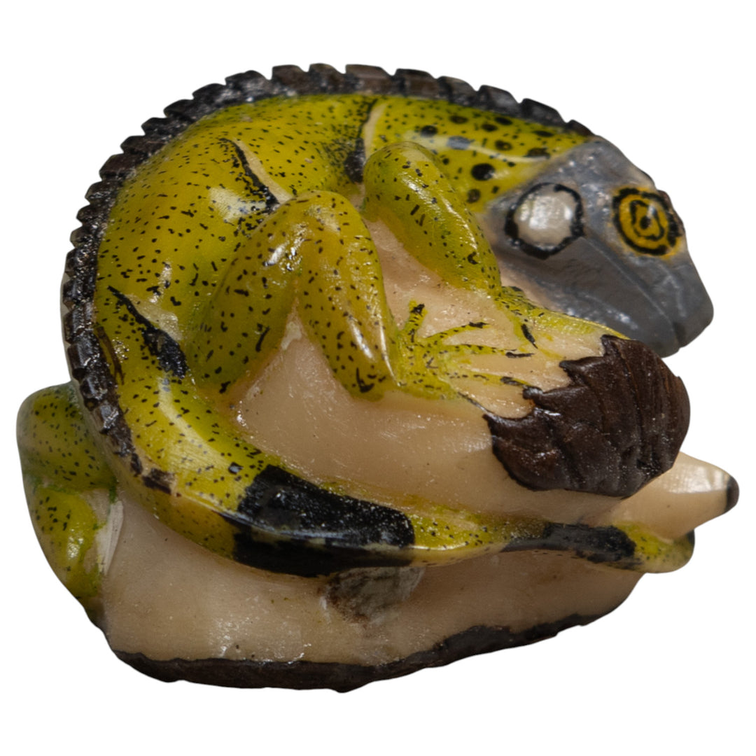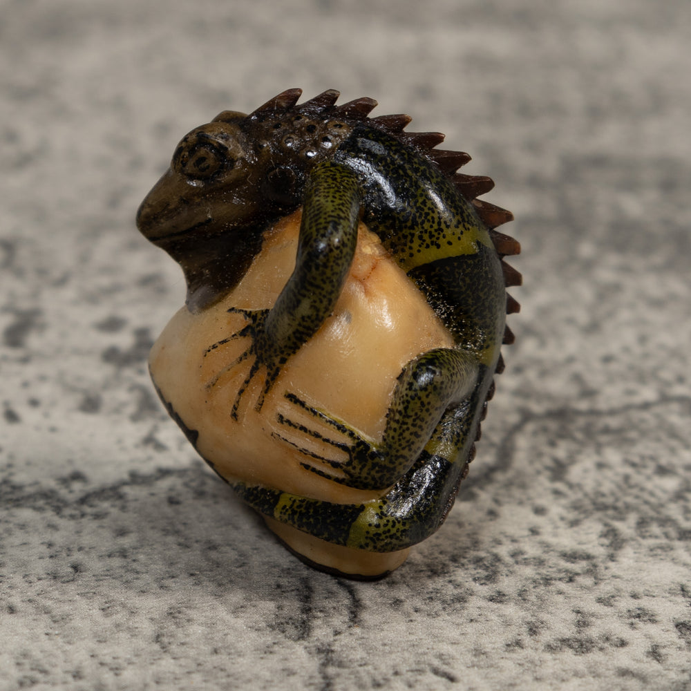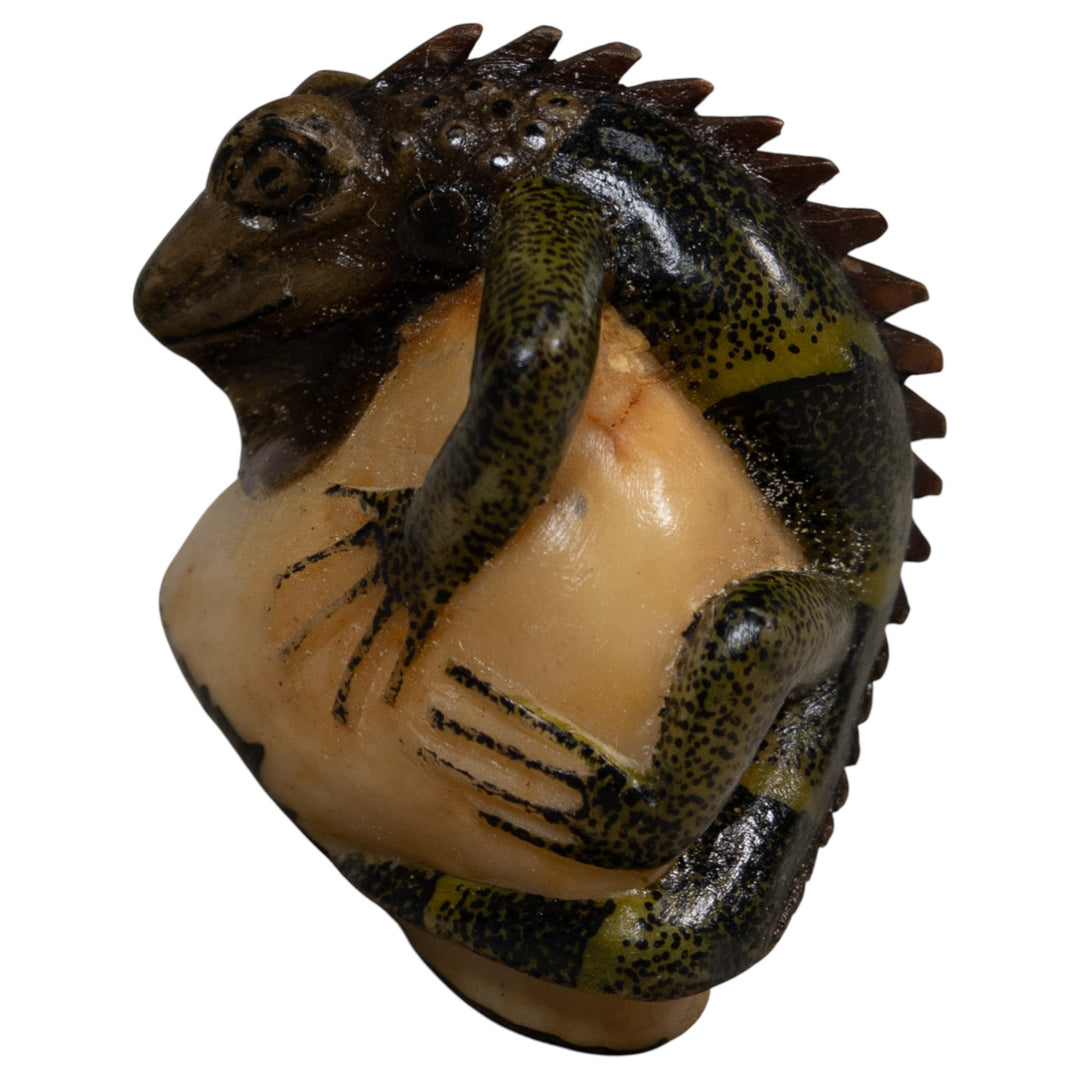 Vintage Black And Green Iguana Lizard Tagua Carving