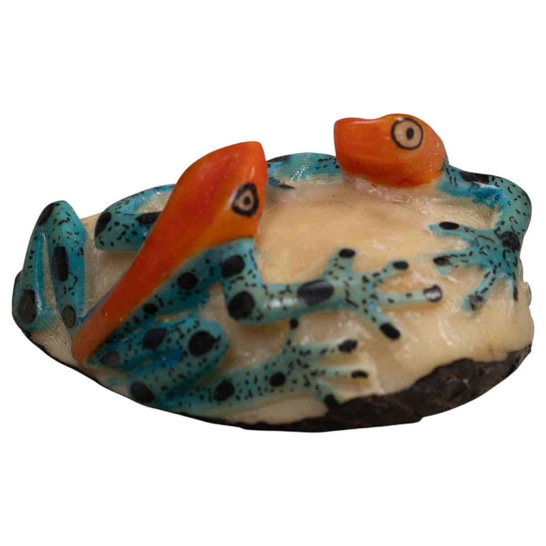 Double Green Orange And Blue Poison Dart Frog Tagua Carving