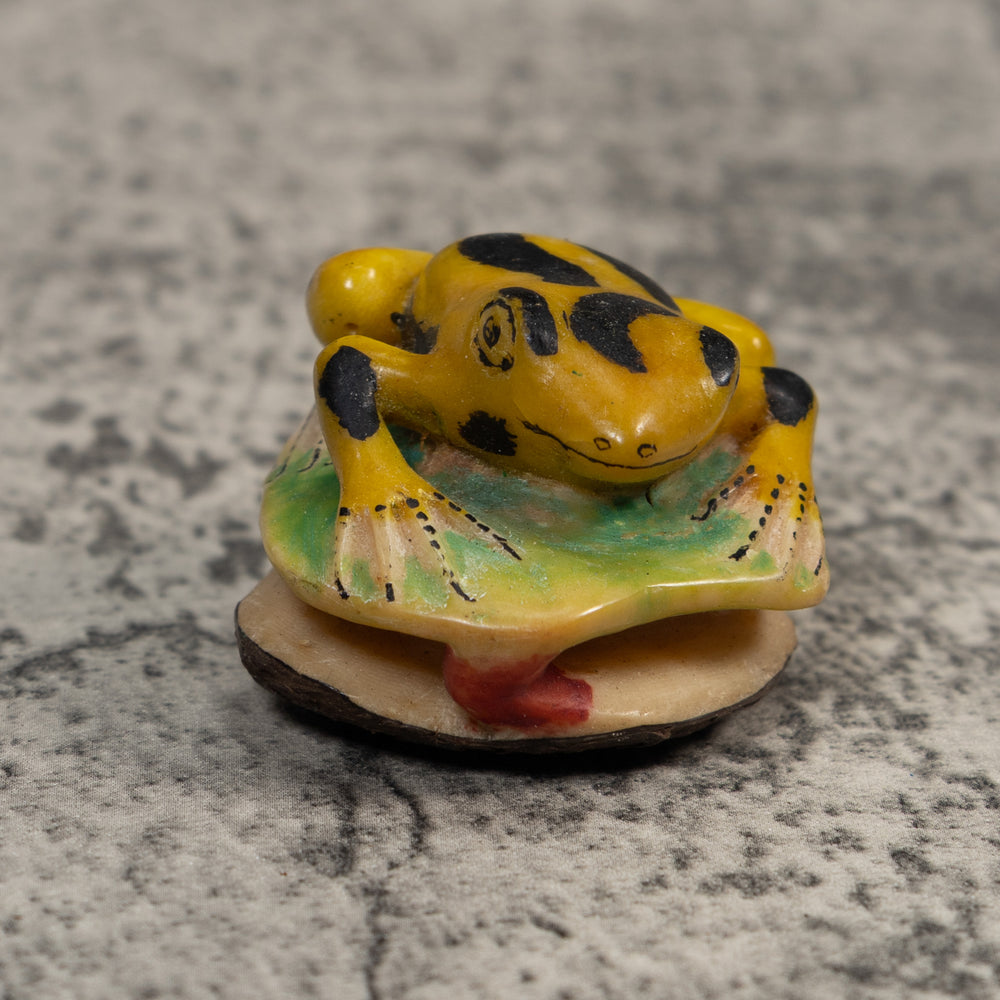 Vintage Yellow And Black Poison Dart Frog Tagua Carving