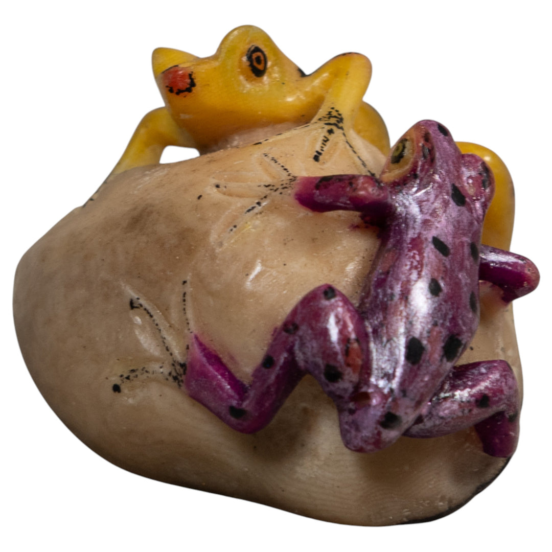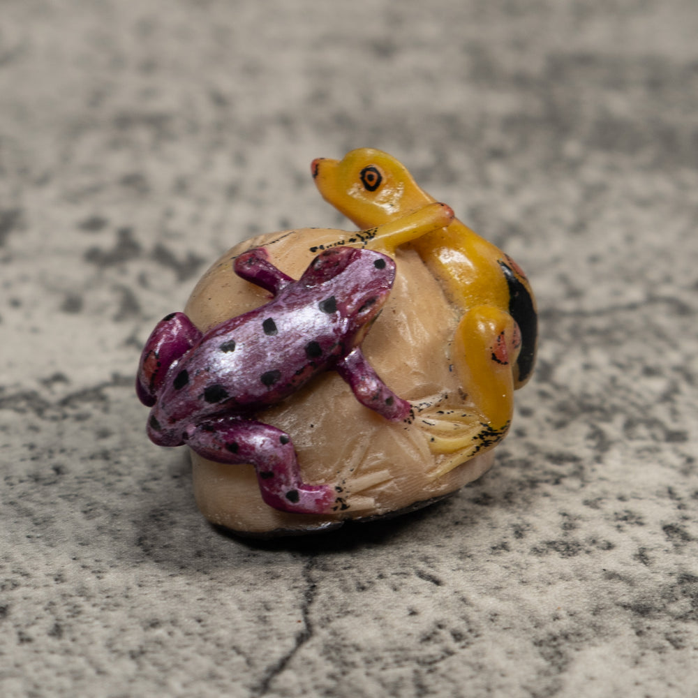 Double Vintage Purple And Gold Poison Dart Frog Tagua Carving