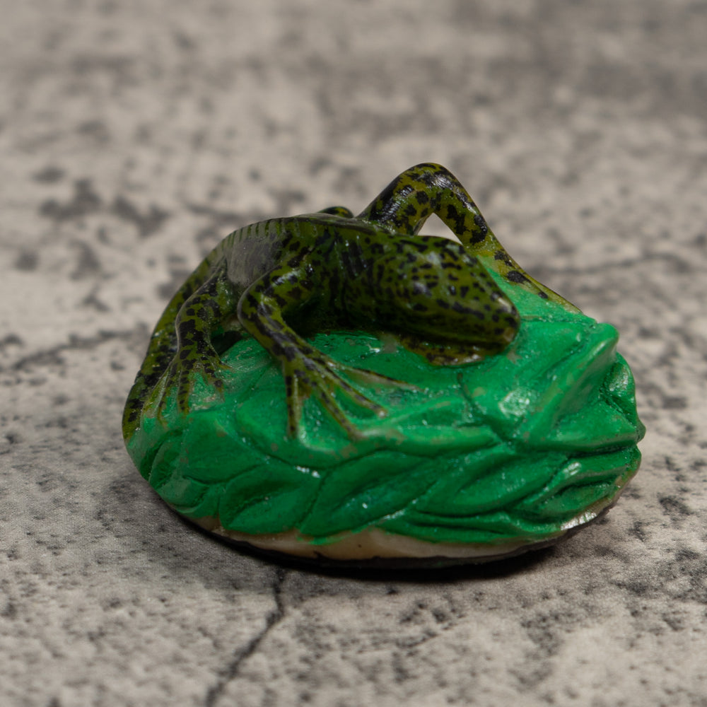 Vintage Green Gold And Dots Poison Dart Frog Tagua Carving