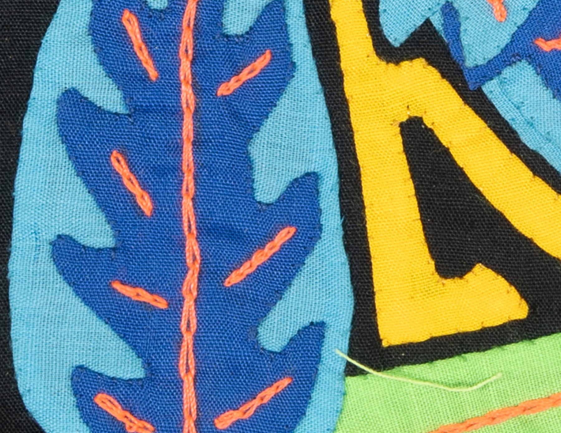 • Reverse appliqué design with layered cotton fabric and vivid colors