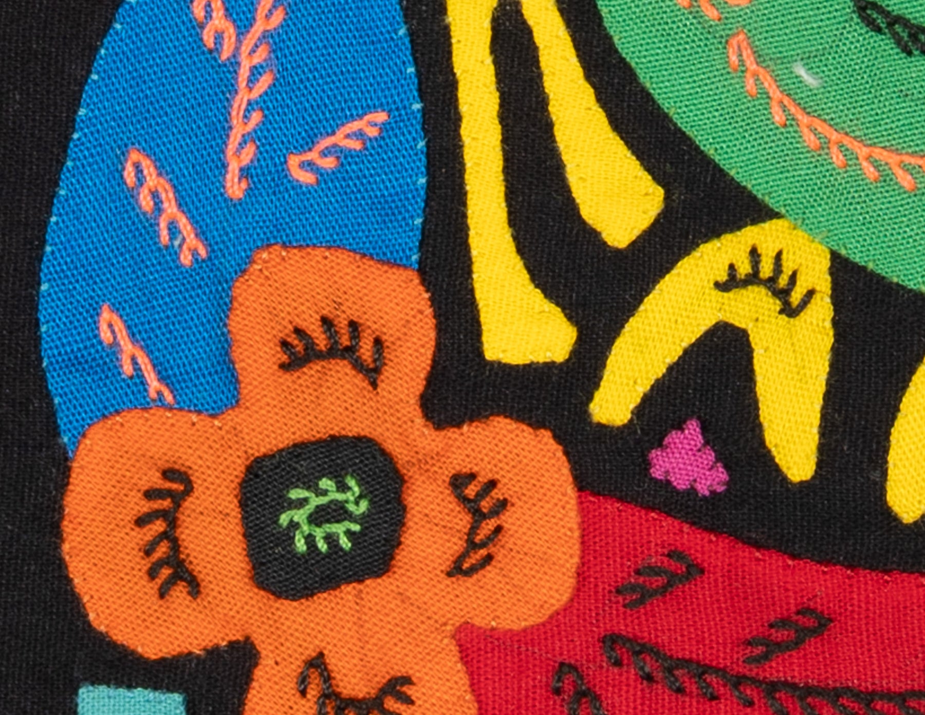 • Reverse appliqué design with layered cotton fabric and vivid colors