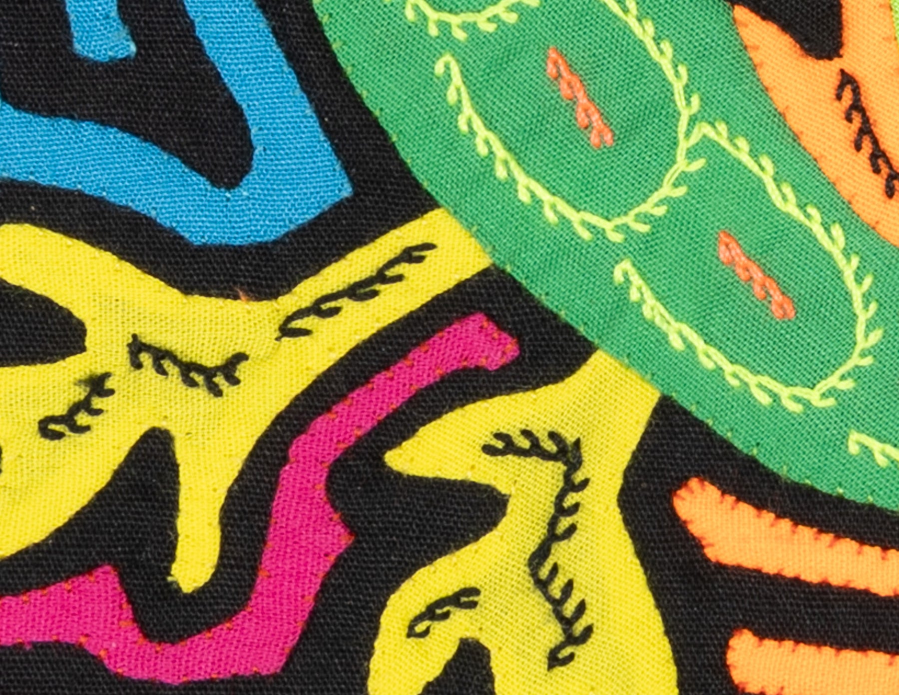 • Reverse appliqué design with layered cotton fabric and vivid colors