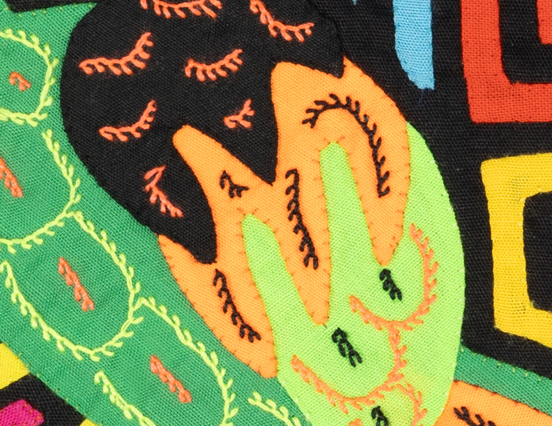 The process begins with layering vibrant cotton fabrics, which are carefully cut to reveal intricate patterns beneath. Guna artisans then use a combination of appliqué and reverse appliqué techniques, often enhancing each piece with fine hand embroidery. The result is a stunning, one-of-a-kind work of textile art rich in tradition, color, and cultural meaning.