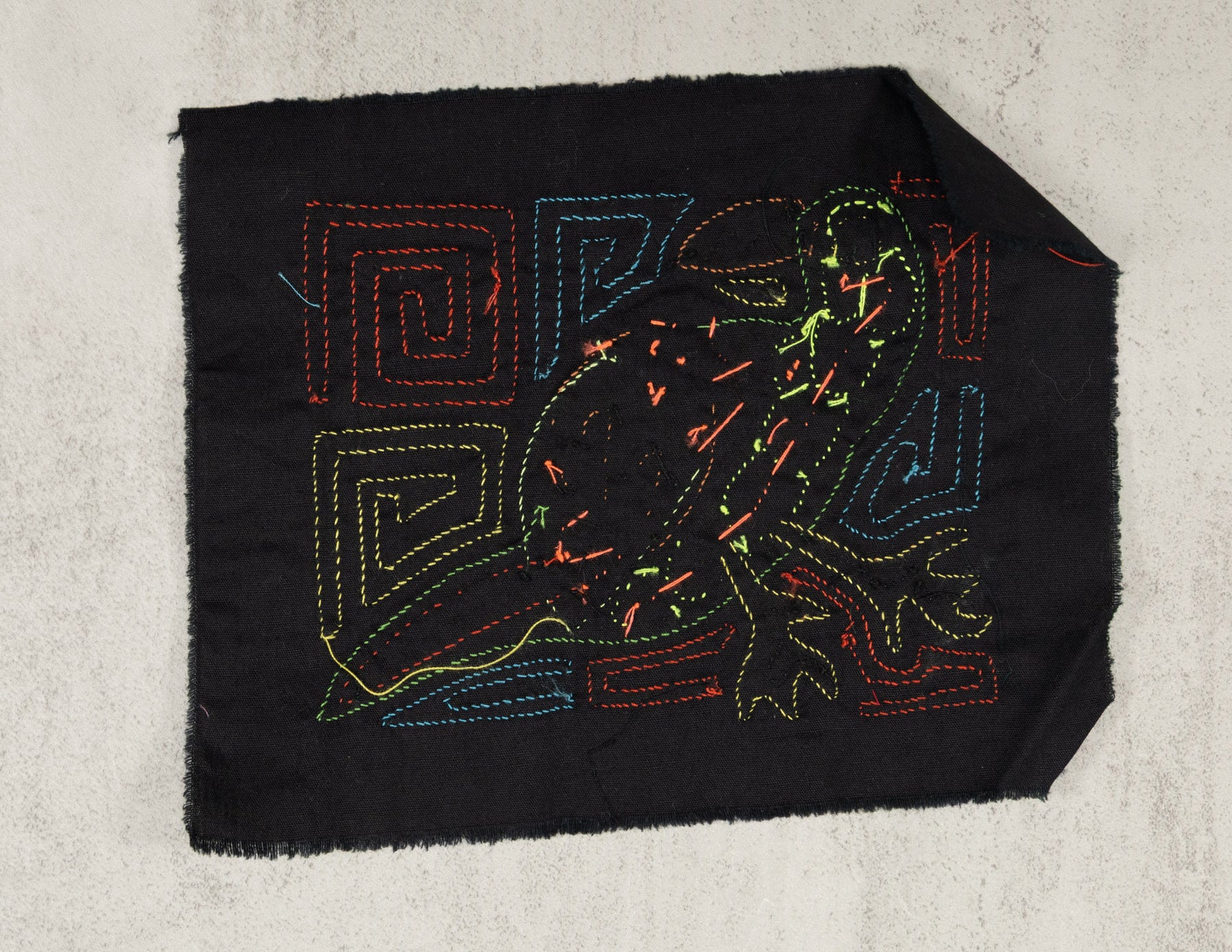 Molitas are traditionally used as parts of mola blouses, and today they make beautiful small works of art in their own right. You can frame this piece, incorporate it into a quilt or pillow, or display it on a shelf to bring a touch of vibrant Panamanian culture into your space. Because each molita is stitched by hand, no two are exactly alike, and small variations in color and stitching add to its character and authenticity.