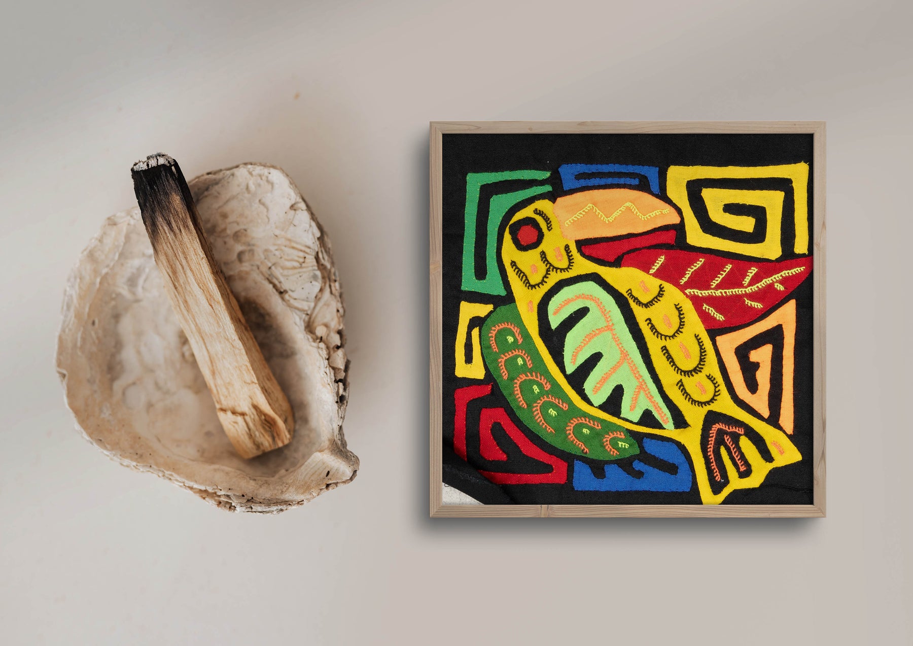 Molitas are traditionally used as parts of mola blouses, and today they make beautiful small works of art in their own right. You can frame this piece, incorporate it into a quilt or pillow, or display it on a shelf to bring a touch of vibrant Panamanian culture into your space. Because each molita is stitched by hand, no two are exactly alike, and small variations in color and stitching add to its character and authenticity.