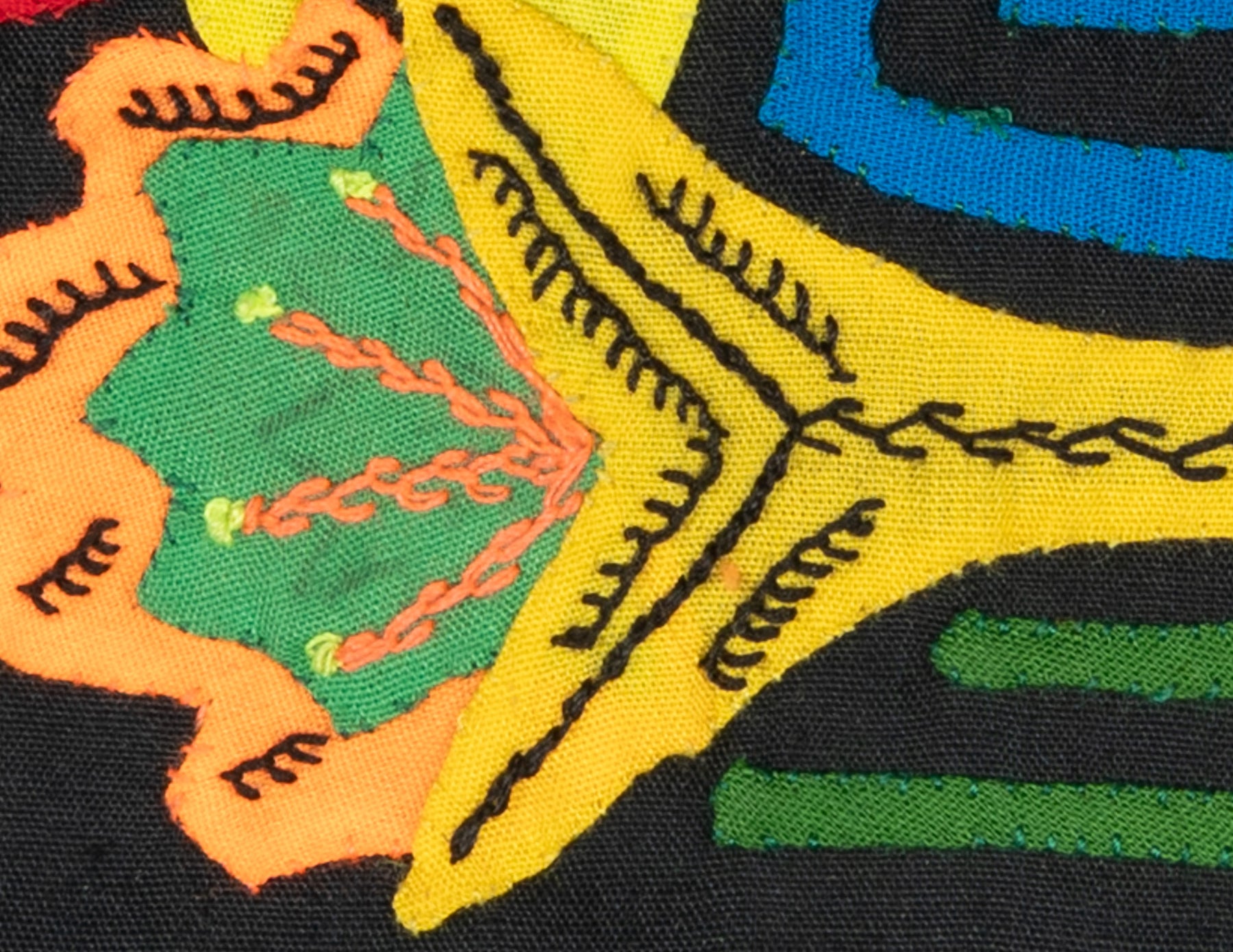 The process begins with layering vibrant cotton fabrics, which are carefully cut to reveal intricate patterns beneath. Guna artisans then use a combination of appliqué and reverse appliqué techniques, often enhancing each piece with fine hand embroidery. The result is a stunning, one-of-a-kind work of textile art rich in tradition, color, and cultural meaning.