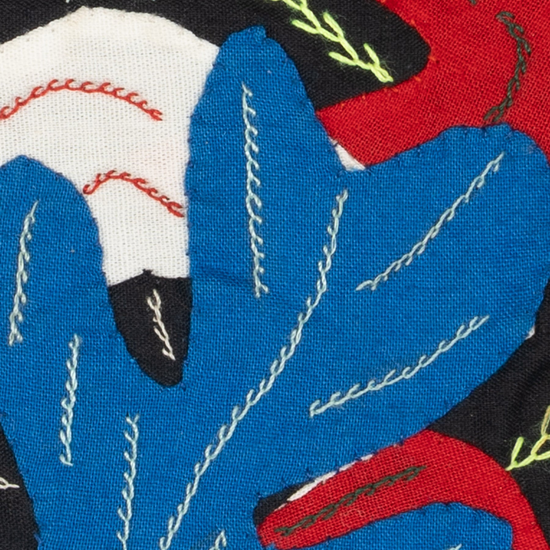 • Reverse appliqué design with layered cotton fabric and vivid colors