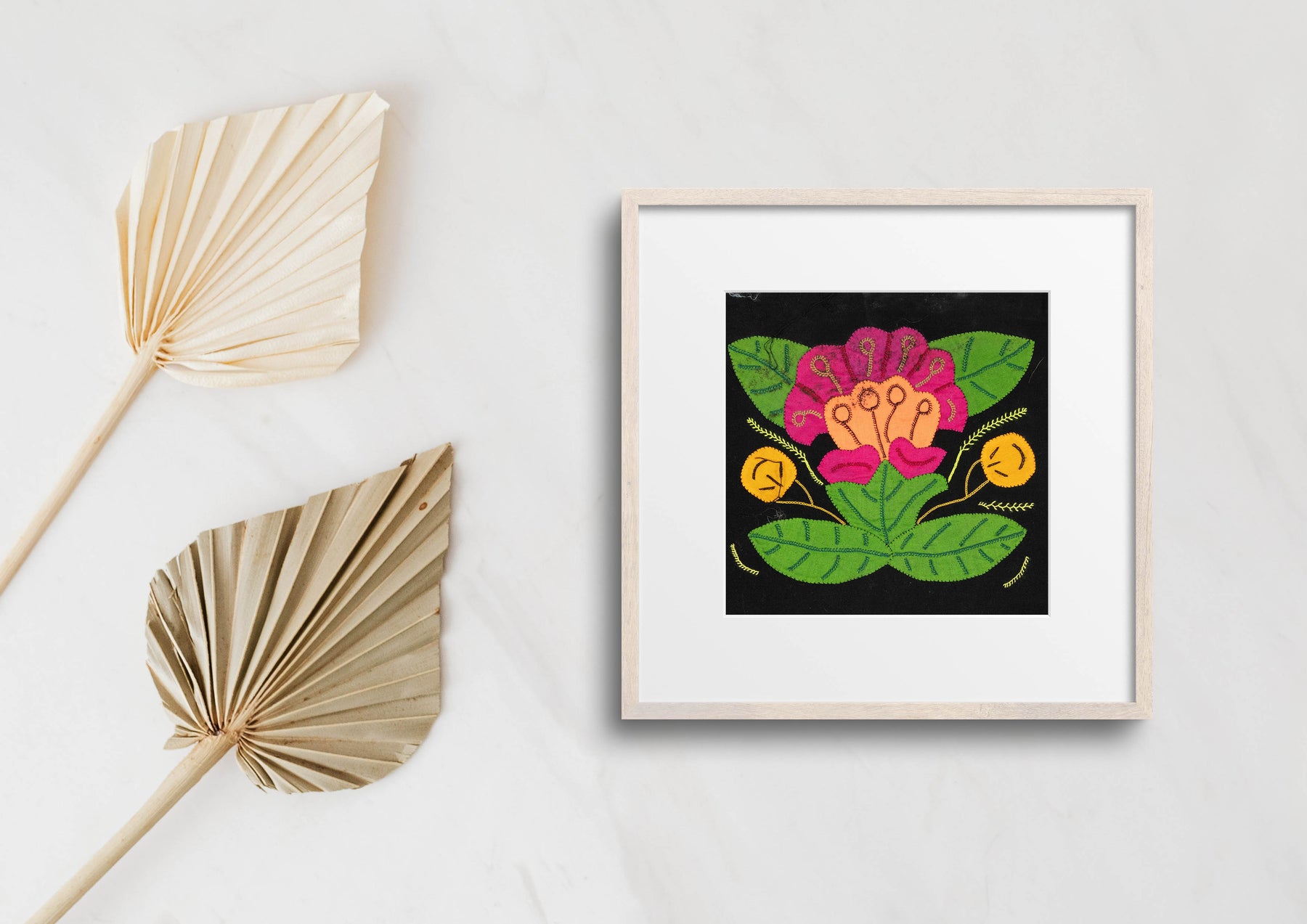 Molitas are traditionally used as parts of mola blouses, and today they make beautiful small works of art in their own right. You can frame this piece, incorporate it into a quilt or pillow, or display it on a shelf to bring a touch of vibrant Panamanian culture into your space. Because each molita is stitched by hand, no two are exactly alike, and small variations in color and stitching add to its character and authenticity.