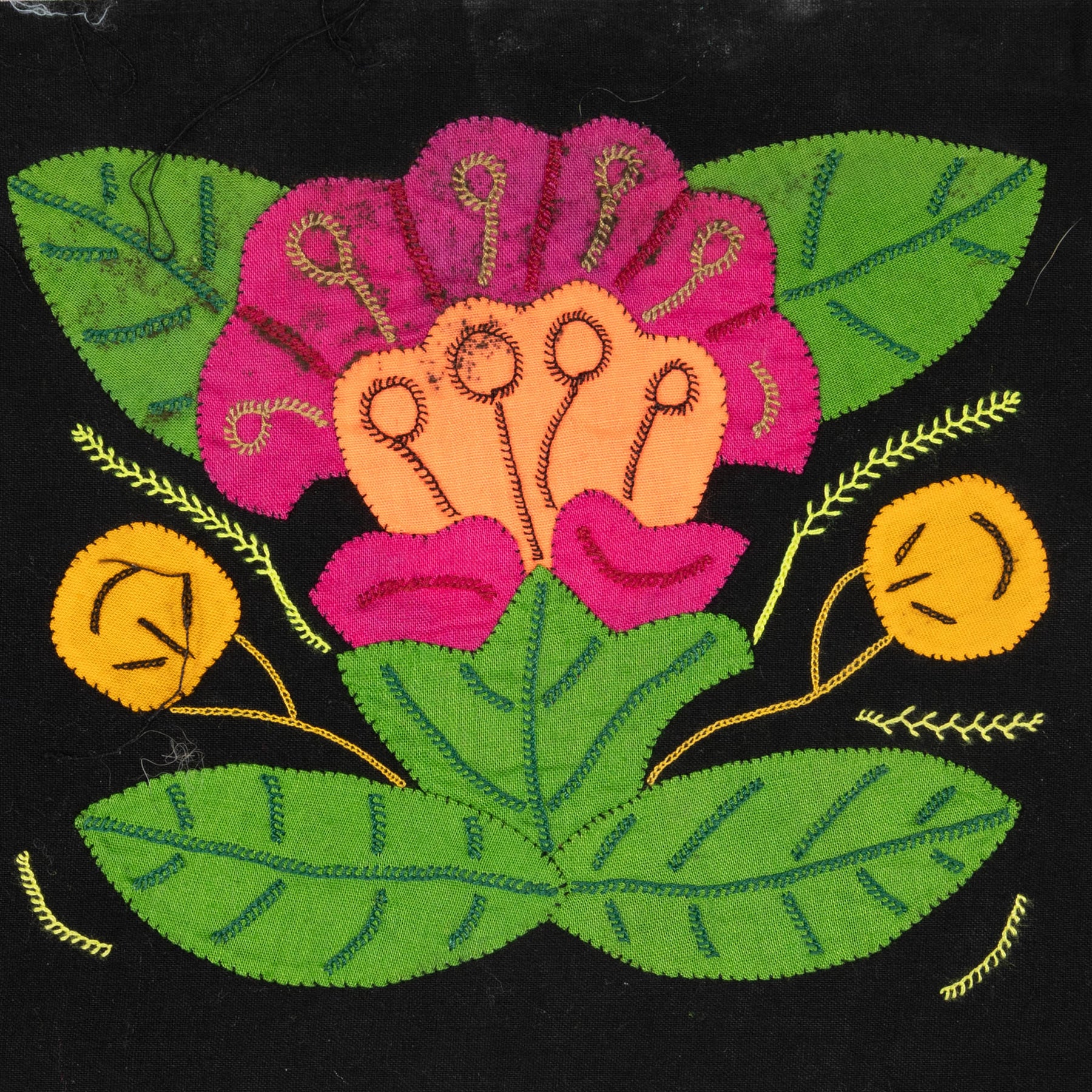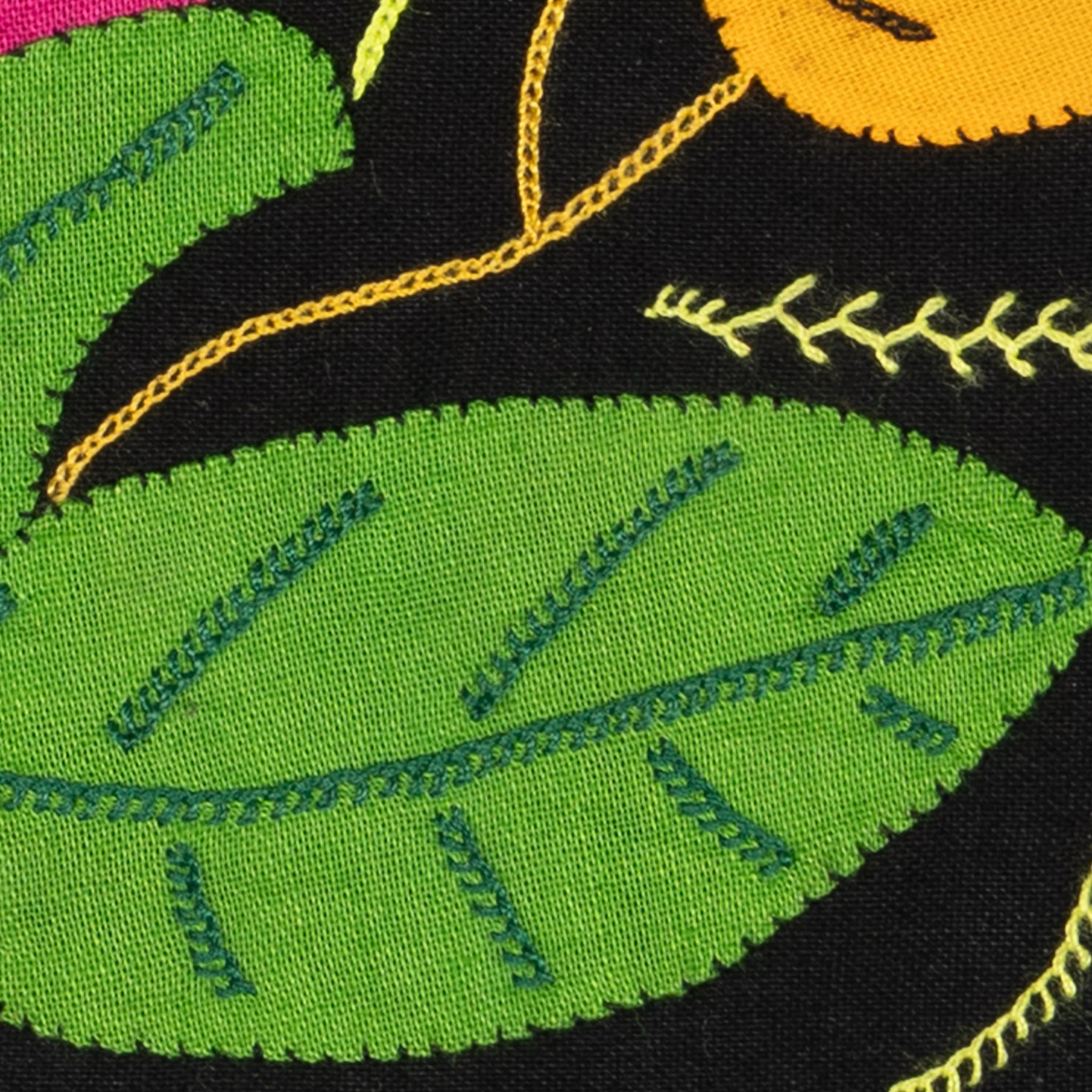 • Reverse appliqué design with layered cotton fabric and vivid colors