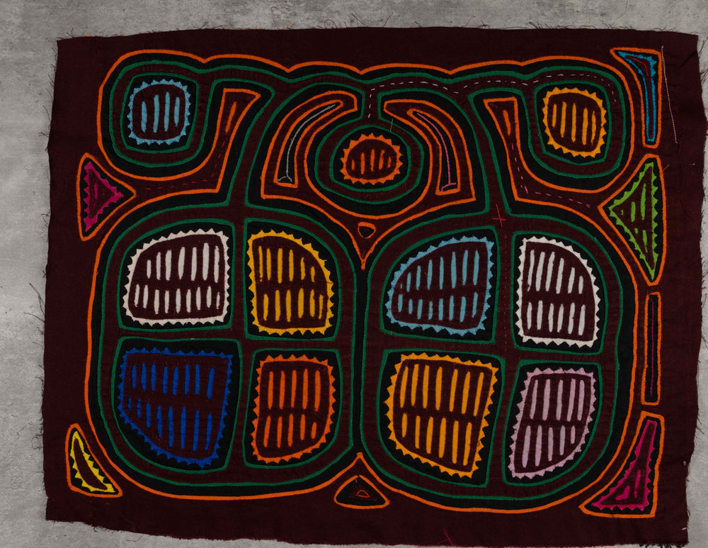 TRADITIONAL CONSTRUCTION & DESIGN: Molas are hand-made using a reverse appliqué technique using several layers of different colored cloth. The largest pattern is typically cut from the top layer and smaller patterns from each underlying layer. Geometric molas are the most traditional. Originating from ancient body paintings. Designs usually portray wildlife in the Rainforest. Inspiration comes from the nature and beauty that surrounds them.