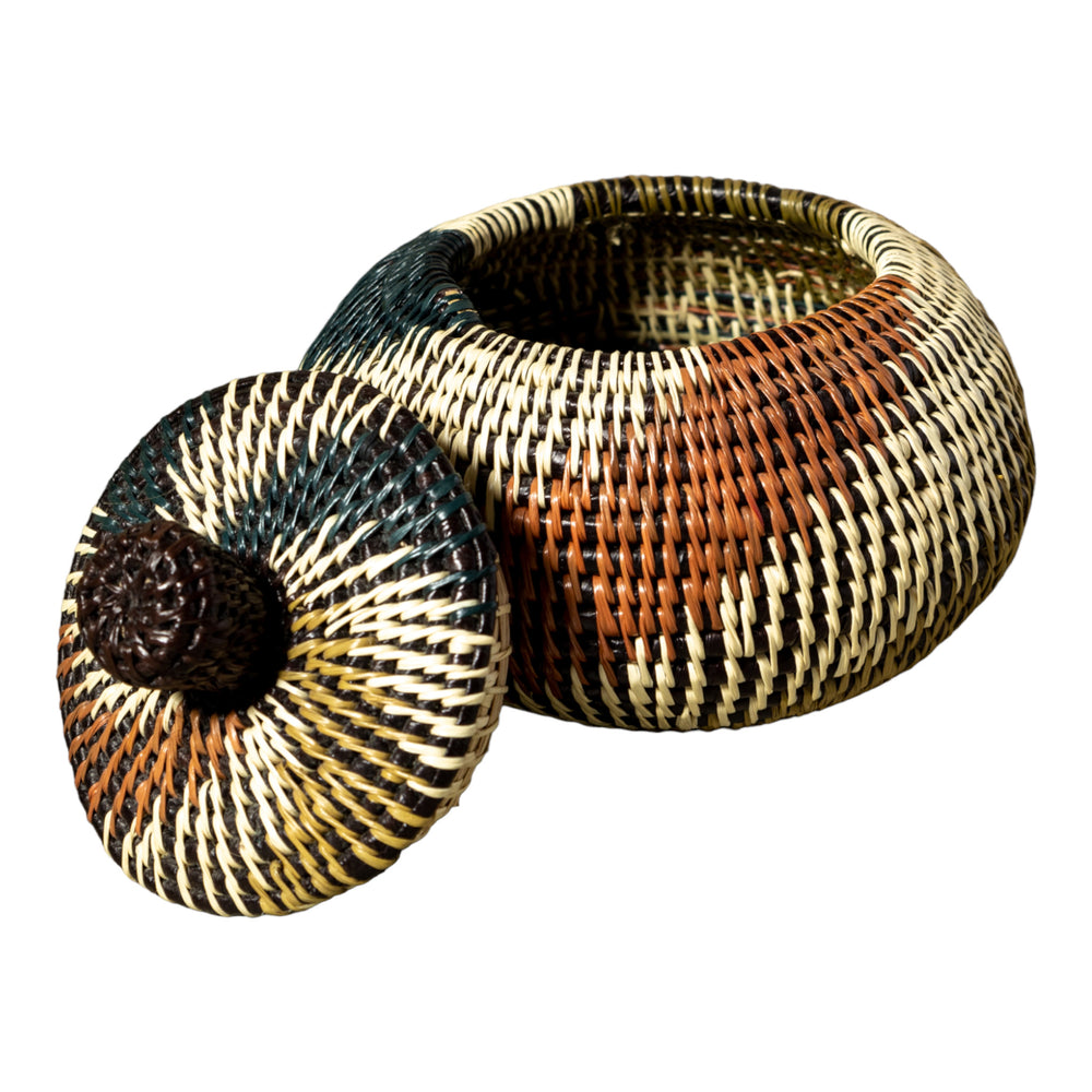 Green White And Brown Swirl Woven Basket With Top