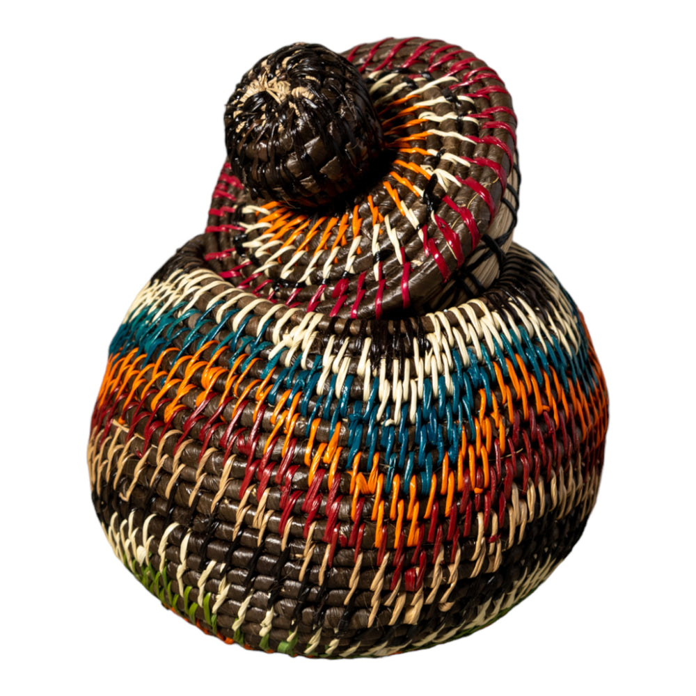 The art of basket weaving is passed down through generations, with techniques, patterns, and designs reflecting the knowledge and experience of the artisans. The intricate geometric patterns and vibrant colors used in the baskets often carry cultural symbolism and can represent stories, legends, or aspects of the natural world.