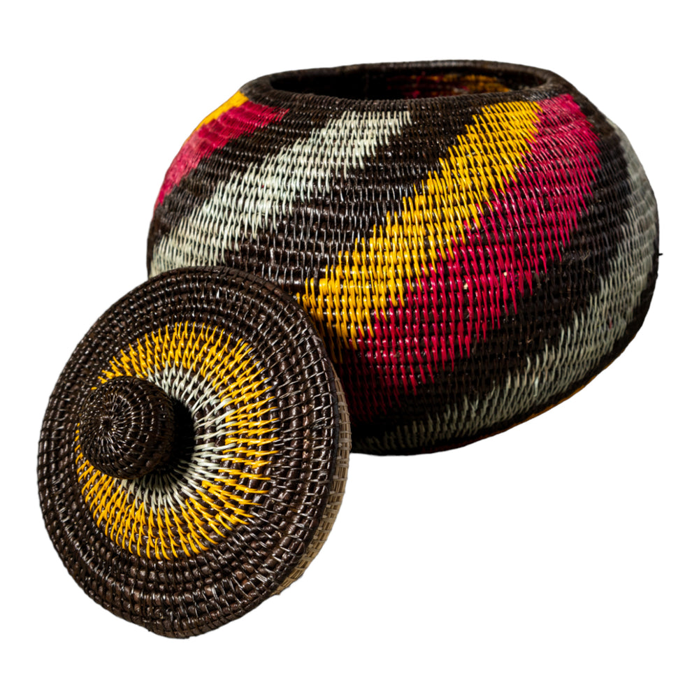 The art of basket weaving is passed down through generations, with techniques, patterns, and designs reflecting the knowledge and experience of the artisans. The intricate geometric patterns and vibrant colors used in the baskets often carry cultural symbolism and can represent stories, legends, or aspects of the natural world.