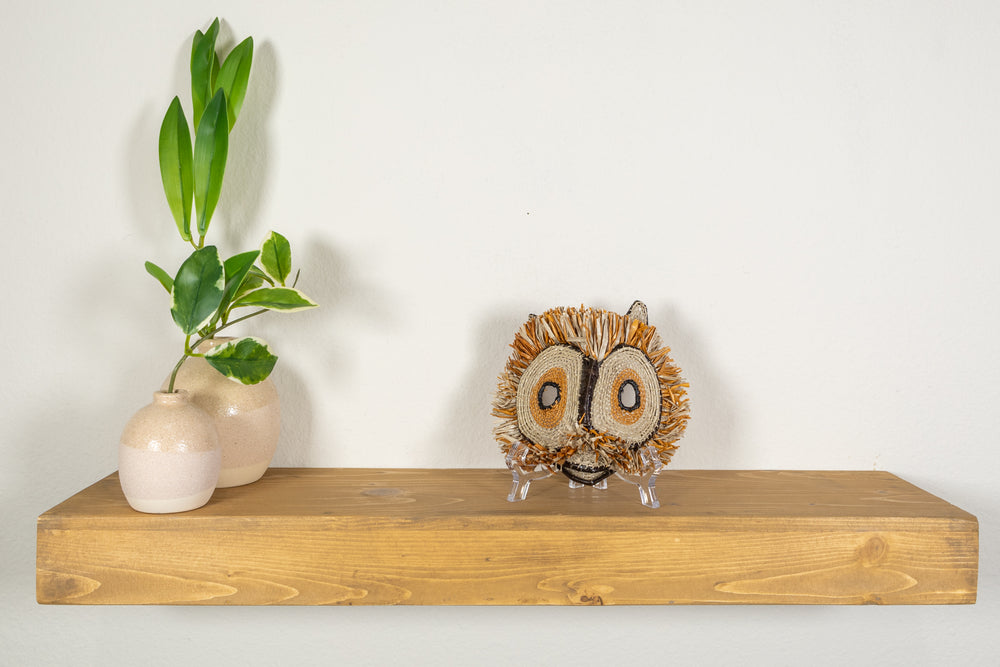 This intricately handwoven Gold Molasses Owl Mask is the perfect addition to any wall. The beautiful colors and patterns are eye-catching and will liven up any room. Not to mention, it's a great conversation starter! The mask is also Fair Trade, so you can feel good about your purchase knowing that you are directly contributing to the Indigenous artisan community of Panama.