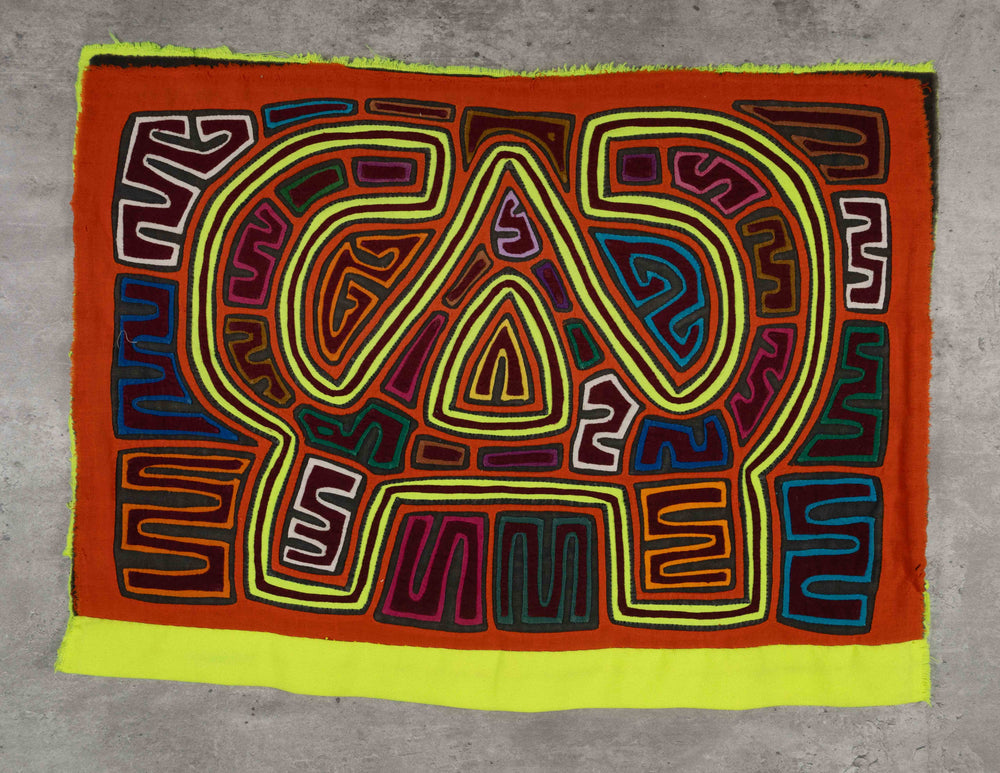 TRADITIONAL CONSTRUCTION & DESIGN: Molas are hand-made using a reverse appliqué technique using several layers of different colored cloth. The largest pattern is typically cut from the top layer and smaller patterns from each underlying layer. Geometric molas are the most traditional. Originating from ancient body paintings. Designs usually portray wildlife in the Rainforest. Inspiration comes from the nature and beauty that surrounds them.