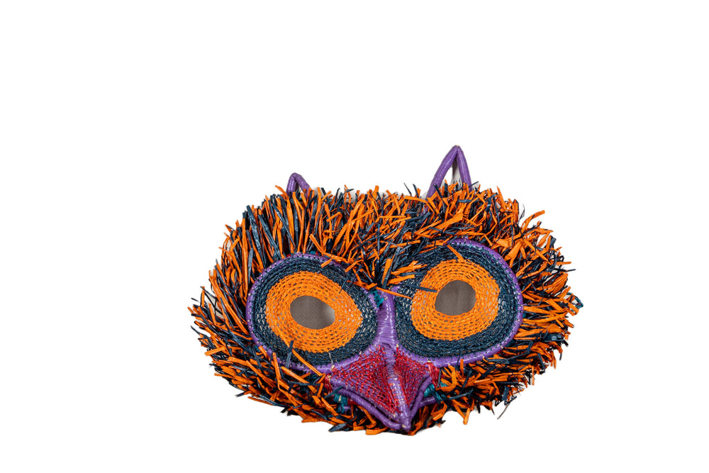 This intricately handwoven Orange Fiesta Owl Mask is the perfect addition to any wall. The beautiful colors and patterns are eye-catching and will liven up any room. Not to mention, it's a great conversation starter! The mask is also Fair Trade, so you can feel good about your purchase knowing that you are directly contributing to the Indigenous artisan community of Panama.