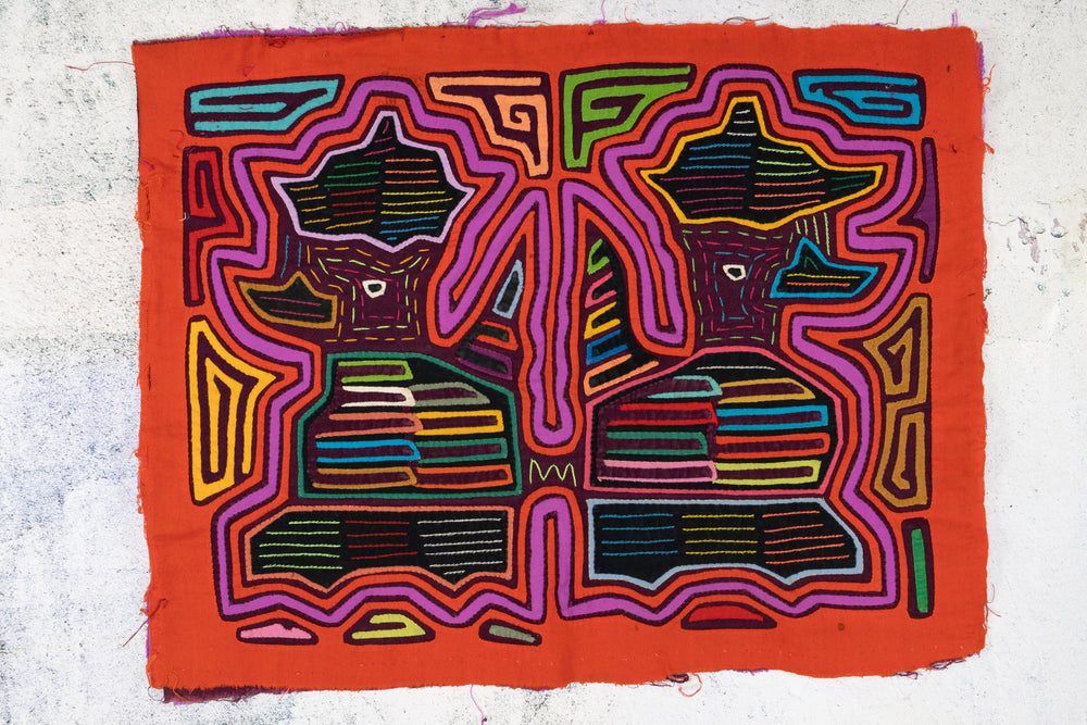 Guna artisans then use appliqué and reverse appliqué techniques, often adding
